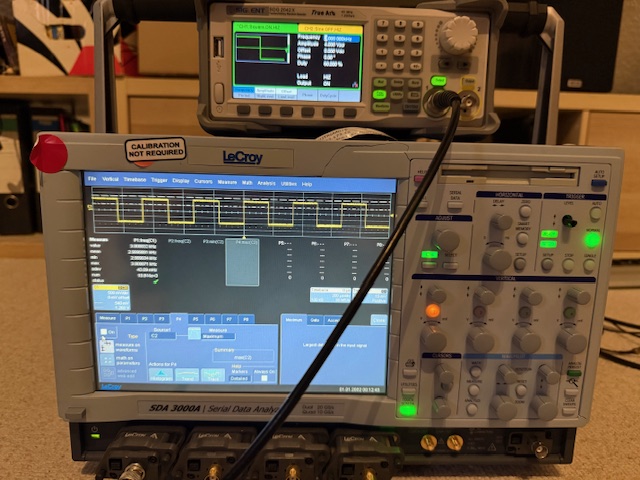 Hallo zusammen. Aus einer Aufräum-Aktion biete ich hier einige nicht mehr genutzte Messgeräte an. Hierbei handelt es sich um ältere, aber funktionsfähige Messgeräte und Analyzer. Eins vorab. Ich bin kein professioneller Händler und ich kenne die aktuellen Marktpreise für solche gebrauchten Geräte NICHT! Ich orientiere mich an früheren Verkäufen und mir ist bewusst, dass es auf eBay Geräte aus Fernost mit hunderten Funktionen mehr für nur einen Bruchteil des Preises gibt. Also bitte einfach dort kaufen :) Für faire Verhandlungen und konstruktive Diskussionen bin ich IMMER offen! Ach ja, ich habe keinerlei Umverpackung und werd auch nicht verschicken. Geräte gibt es gegen Bares in Ulm. Dafür gibt es Kaffee dazu und ein Ausprobieren ist selbstredend auch möglich! 1. Serial Data Analyzer / Scope LeCroy SD3000A 3 GHz - Voll funktionsfähig - 4 Aktive Taskköpfe inkl. - Leichte Beschädigung des vorderen Gehäuses (s. Bild) - Ethernet-Interface - Ein Poti-Drehknopf-Deckel-Dings fehlt (tut aber der Funktion keinen Abbruch) - VB: 1500 € 2. Scope LeCroy LC334A 500 MHz - Voll Funktionsfähig - Keine Tastköpfe dabei - 4 Kanäle / 2 GS - VB: 450 € 3. Rohde & Schwarz Signal Analyzer FSIQ3 20Hz - 3.5 GHz - Voll funktionsfähig (soweit ich testen konnte!) - Selbsttest erfolgreich (s. Bild) - Funktionen (s. Bild) - Calibration-Knopf ins Gehäuse gerutscht (Tut aber trotzdem!) - VB: 1800 € 4. Netzteil Conrad 2 Kanal 0-40V / 0-3A - Kanal 1 tut perfekt - Kanal 2 hat einen Konstanten pos. Offset von 0.7V - Daher als Defekt abzugeben - VB: Kasten Bier 5. Data Quality Analyzer / Ethernet Tester Anritsu 1230B - Ethernet 10/100/1000 MBit Slot-Karte MU120121A - Konnte die Funktion nicht testen mangels fehlendem Setup - Scheint aber sauber zu funktionieren - VB: 500 € Für bessere Bilder, weitere Fragen etc. einfach fragen. Oder vorbei kommen :) PS.: Geld wandert in die Team-Kasse. Grüße aus dem verschneiten Süden