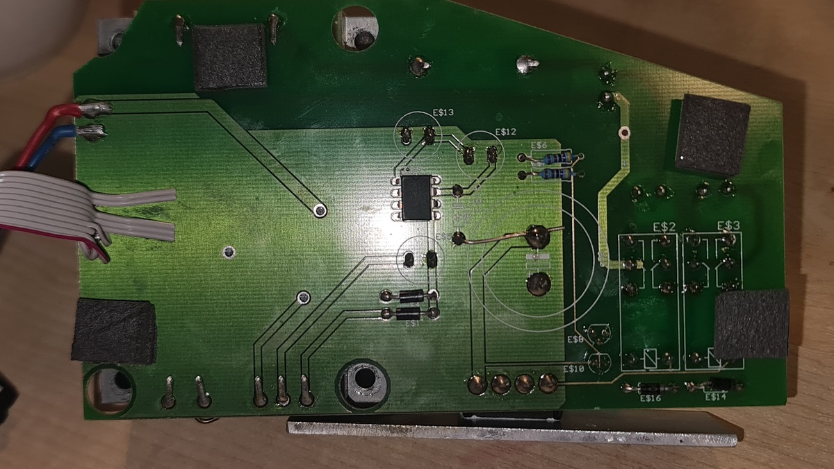 Hallo, anbei ein Bild der Unterseite der Platine. Ich habe eben erfahren, dass über die Fa. CNCGraf der Chef der Herstellerfirma der Fräse, die es nicht mehr gibt, ermittelt werden konnte. Mein Freund sagte, dass dieser wohl noch einen Trafo hätte und ihm den zusenden würde. Hat jemand aus diesem Forum Lust den einzulöten und die übrigen Komponenten der Platine durchzumessen? Selbstverständlich nicht umsonst. Ist auch nicht brandeilig. Schickt mir ne PN mit Preisangabe, Geld würde ich dem Päckchen beilegen. Vielen Dank für die freundlichen Antworten und Grüße Michael