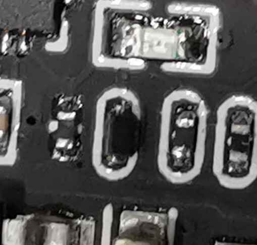 Erst mal Danke für die Bemühungen. "Im Bild details.jpeg ist aber etwas auf der Position von R10 sonst würde ich zwei Pads sehen aber ein Pad ist durch "Schwarz" komplett verdeckt." Ich habe das nicht richtig verstanden. Ich orientiere mich an der roten Markierung auf dem Bild von Kathe. Ich weiß nicht, wo R10 zu finden ist noch sehe ich durch schwarz abgedeckte Pads. Deshalb bin ich bemüht so gut wie irgend möglich Bilder zu fertigen.
