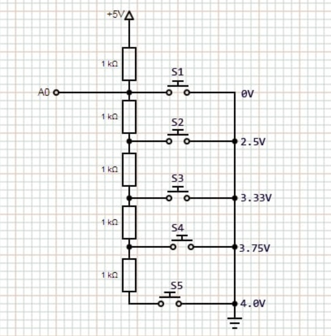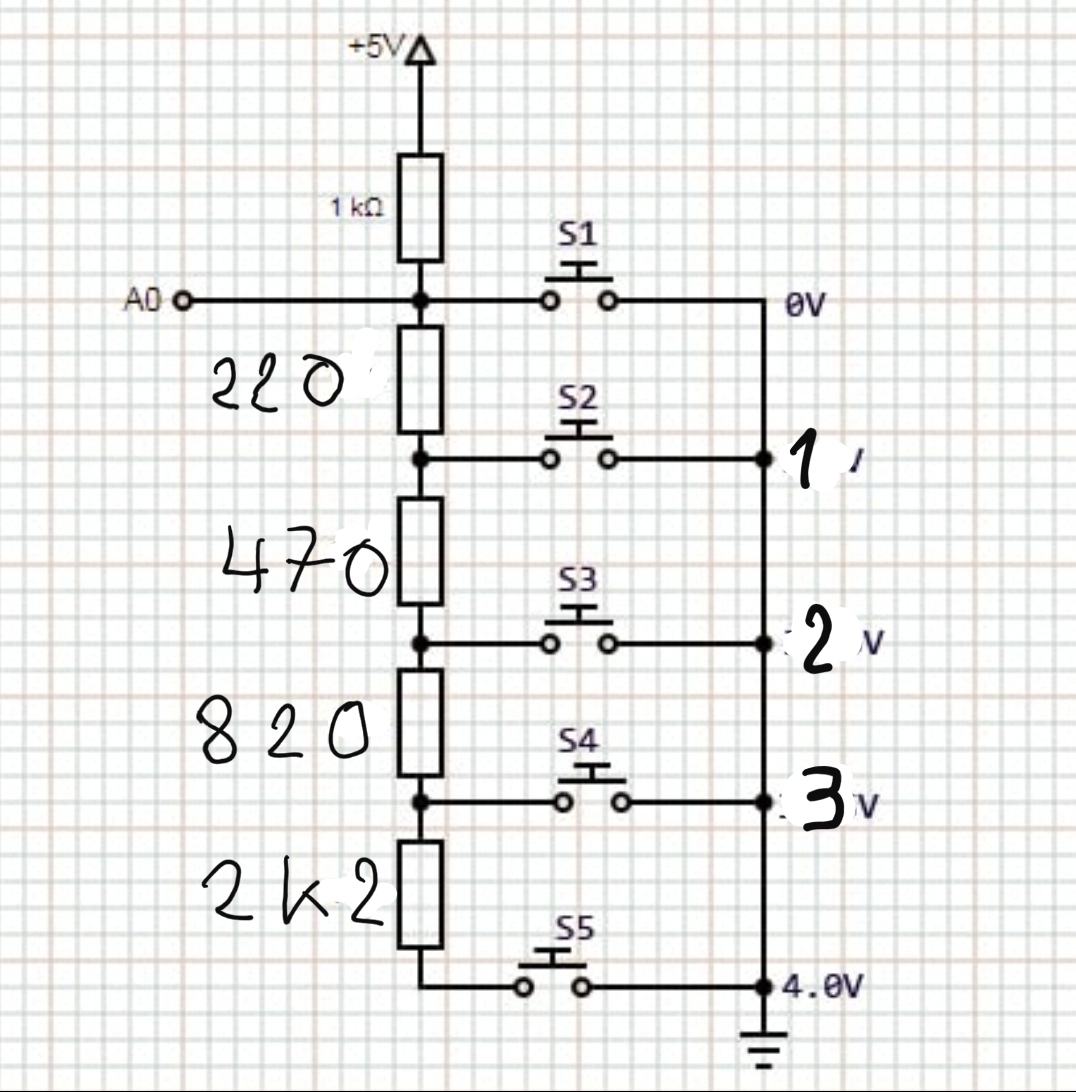 Was wäre eine guter Schaltplan um 5 Taster auf 1 pin zu legen?) Der angehängten Schaltplan funktioniert bestens auf arduino mega 2560.