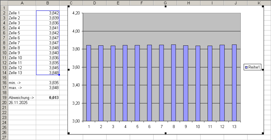 Hallo, als der Akku neu war, hatten alle Zellen gemessene 3,80V. Nach nun 6 Jahren und ca. 700 Ladezyklen sind die Zellen immer noch rel. gut in Balance, siehe Excel-Diagramm. Ich errechne eine Abweichung von 0,013V. Um den Akku zu schonen, nutze ich stets ein 80/20 Fenster, was dem Akku offensichtlich nicht geschadet hat. Allerdings hätte ich nach den Jahren und den vielen Zyklen eine deutlich höhere Abweichung erwartet. Eine Balancerschaltung konnte ich im Akku nicht finden. Selbst wenn eine verbaut wäre, würde selbige nie aktiv werden, da der Akku nie den Ladezustand "Voll" erreicht. Mich würde mal interessieren, wie sich andere Pedelec-Akkus bzgl. Drift verhalten. Hans PS: Verbaut sind Markenzellen von LG (INR18650M26) in 13s4p Konfiguration. Laut Datenblatt ist die Zelle prädestiniert für die Anwendung in Scootern und E-Bikes.