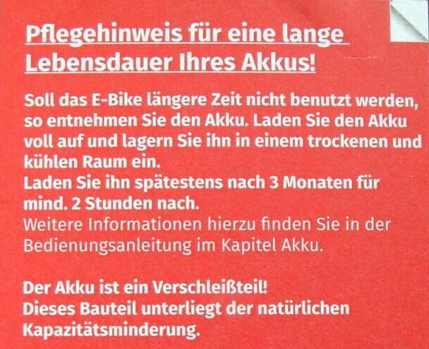 Armin X. schrieb: > Ich könnte mir aber auch vorstellen, dass der Balancer immer mal wieder > kurz eingreift und die Zellen angleicht. Du hast gelesen, dass ich den Akku entgegen den Anweisungen des Herstellers (Foto) ausschließlich in einem 80/20 Fenster nutze? Der Akku verliert auch bei Lagerung so wenig Energie, dass man ihn auch mit 60% Ladezustand ohne weiteres 2 Jahre im Keller stehen lassen kann. Alle 3 Monate auf 100% laden heißt bei dem Akku nichts anderes, als ihn vorsätzlich kaputt zu laden. Dass ein Balancer kurz eingreift passt auch nicht, denn dann müsste man auf der Platine Bauteile sehen, die Leistung aufnehmen können. Dem ist nicht so. Ich stehe echt vor einem Rätsel. Ein Nachbar hat seinen Marken Akku nach jeder Fahrt auf 100% geladen. Man will schließlich sofort durchstarten können, wenn die Sonne raus kommt, oder die Kumpels zur gemeinsamen Ausfahrt einladen. Im 3. Jahr war dann der Akku so schwach, dass er nicht mehr vernünftig nutzbar war. Der Nachbar hatte ein Marken-Pedelec für ziemlich genau den 3-fachen Preis wie mein Billig-Bike aus dem Supermarkt. Extrem ärgerlich, dass keinerlei Informationen zum Zellbalancing veröffentlicht sind. Es existiert nicht mal die Informationen, ob eine solche Funktion überhaupt im Akku verbaut ist. Offensichtlich ganz großes Geheimnis.