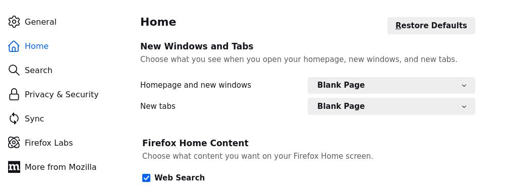 Im Firefox unter: about:preferences#home sollten die Einstellungen wie im Anhang sein.