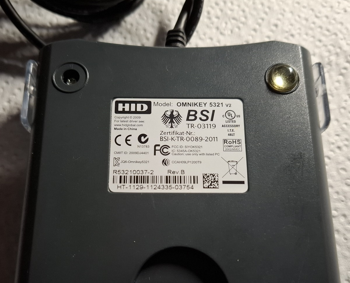 Hallo, noch einen USB Onminkey5321 Leser abzugeben. Kartenlesegerät mit Dual Interface für kontaktlose (13,56Mhz) und kontaktgebundene Smartcard, PC/SC https://www.hidglobal.com/de/products/53210 Ein Gummifuß fehlt :-) 10€ + 2,70€ DHL Büchersendung (Versand DHL/Post und Paypal) Bei Interesse bitte PM mit Artikelangabe. Danke!
