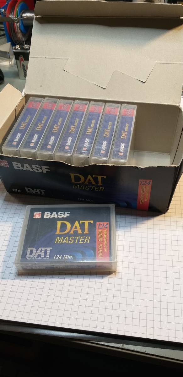 Hallo zusammen, ich sehe gerade hier im Markt, dass es eventuell noch Interesse an Dat Tapes gibt. Ich habe hier noch einen Karton mit original verpackten (NOS) BASF DATmaster 124 Tapes rumliegen, wo ich nicht so recht wusste, ob die noch einer braucht. Es sind natürlich keine Tracking Tapes, wie im vorhergehendem Thread, sondern stinknormale Tapes für einen DAT Recorder. Den habe ich schon entsorgt, der war nicht mehr zu retten. Einen wirklich guten TASCAM tragbaren Recorder, mit dem ich vor langer, langer Zeit Soundmessungen gemacht habe. Schade. Bei Ebay will einer für die Tapes pro Stück 16,90 EUR haben. Ein anderer will für ein 15 min tape fast 5 EUR, der nächste für ein 120er Tape 39,95 EUR. :-(( Manche haben Vorstellungen ... Gut, verschenken will ich sie aber auch nicht. Ich habe 8 Stück von denen, 2 hatte ich damals verbraucht. Was nehme ich nun dafür? Also. 30 EUR für die Kiste? Plus Versand. Vielleicht bin ich zu blauäugig. Aber die liegen hier schon ewig rum, und wenn ich hier nicht im Forum das Interesse endeckt hätte, würden sie wohl noch ewig hier rumliegen. Und sie einzeln zu vertickern, ist mir zu mühselig. Viele Grüße Dirk, DL5DGS