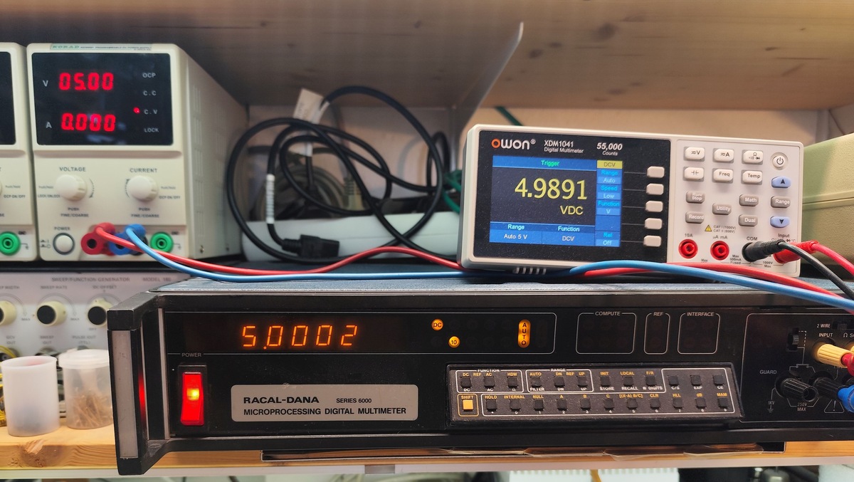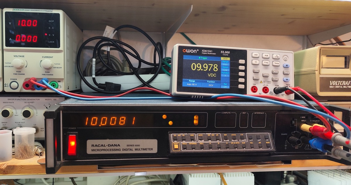 Hallo, wie hier schon angedroht Beitrag "Re: [VS] Verschenke 6.5 Digit Multimeter Racal-Dana 6000" verschenke ich das mir damals geschenkte 5,5(6,5) Digit Multimeter Racal-Dana 6000 weiter. Das Teil passt im Regal nicht mehr unter mein neues DSO, der Bedarf an einer solchen Auflösung besteht auch nicht mehr, also gebe ich es weiter. Das Gerät misst DC Spannung und Widerstände (auch Vierdraht), wobei die Widerstandsmessung eine Macke hat. Serviceanleitung als PDF vorhanden. Abmessungen sind: Breite 425 mm, Höhe 110 mm, Tiefe mit Handgriffen 500 mm. Nur Selbstabholer, PLZ 06886, 10 km von der A9 entfernt, Abfahrt Coswig (Anhalt). Am Wochenende (Freitag bis Sonntag) auch Übergabe in Halle (Saale) möglich. Reinhard