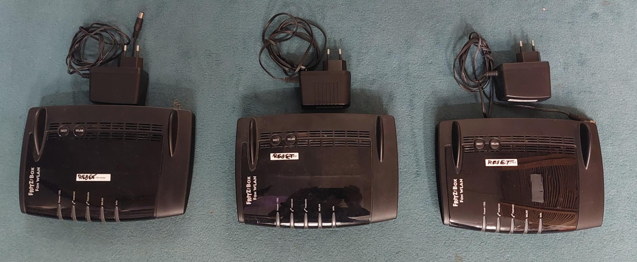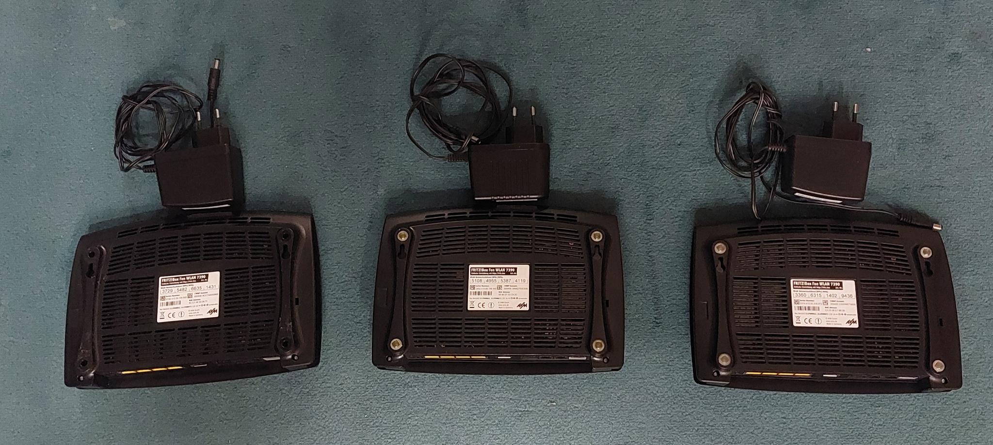 Biete 3 Stück Fritzboxen 7390 incl. Netzteil auf Werkszustand zurückgesetzt liefen bei mir als Router bzw als Repeater. Stückpreis 8 € alle 3 zusammen 20 € immer zuzüglich DHL Versand Bezahlung: paypal for friends, Überweisung oder 6€ / 15€ bar bei Abholung PLZ 853xx falls kein Interesse gehts vor Weihnachten ohne die Netzteile in den Elektroschrott keine Rückgabe bzw Garantie. ## bei Interesse bitte PM und mit emailadresse ##