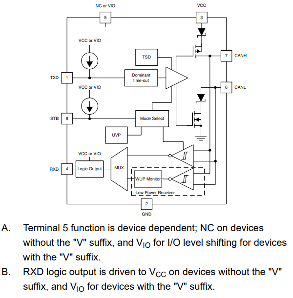 Ist ein TCAN1042V oder aus der 1024 Serie wie TJA1042T/3 mit Externen IO Versorgung an dem PIN 5 für Systeme mit 3V Logik Pegel.