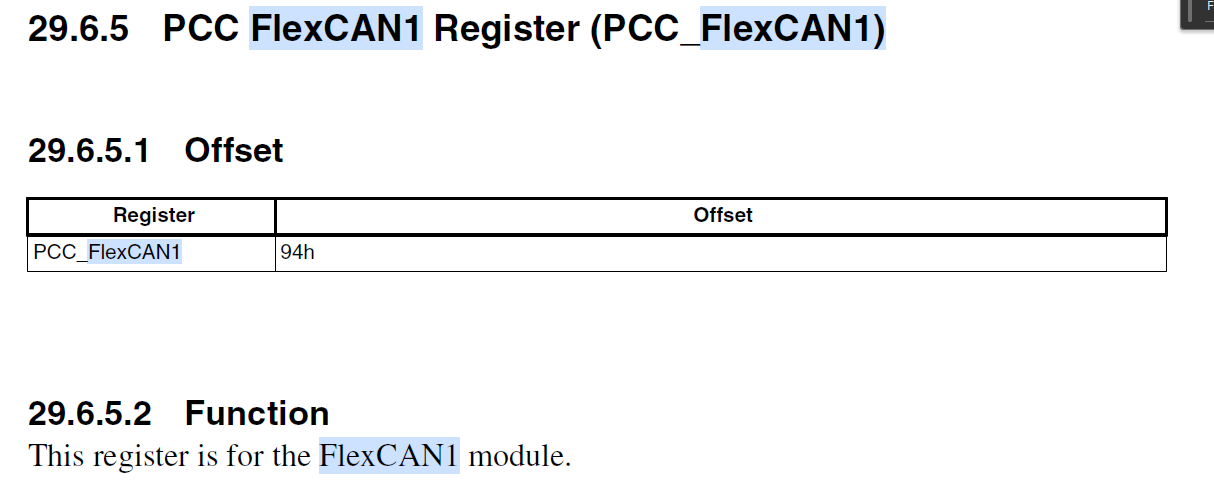 2. Laut dem Referenc Manual ist das Register PCC FlexCAN1 bei einem