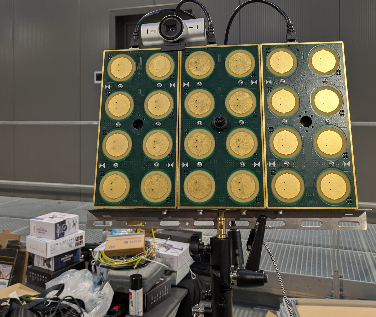Bei Chip und Co gab es einige Design Wins für STM32 und den ESP32-C61 zu sehen. Intelligenz für „Groß-Rechenaufgaben“ kommt im Allgemeinen aus dem Raspberry Pi, während vorgefertigte SDR-Systeme für den elektrischen Teil der Funkschnittstelle sorgen. Die Abbildung zeigt ein vom Forschungsprojekt Espargos entwickeltes System, das für die Antennen-Ansteuerung entweder auf den besagten ESP32 oder auf einen STM32WL3 setzt – in vielen Fällen kommen die Chips massiv paralellisiert zum Einsatz.