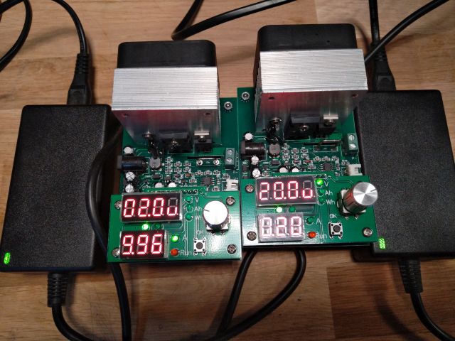 Hallo, hier gibt es zwei Elektronische Lasten zu kaufen, einfach aber zweckmäßig aufgebaut. Ich hatte die dazu benutzt, Abhängigkeiten von DC/DC Wandlern mit mehr als einem Ausgang zu evaluieren oder einfach die maximal Last eines DC/DC Converters zu evaluieren. Beide Teile sind funktionsfähig. Zwei Lasten mit je einem Netzteil zum Preis von 20,-€ plus 5,49€ Hermes Versand. Abholung in Karlsruhe geht auch... Gruß Bernd