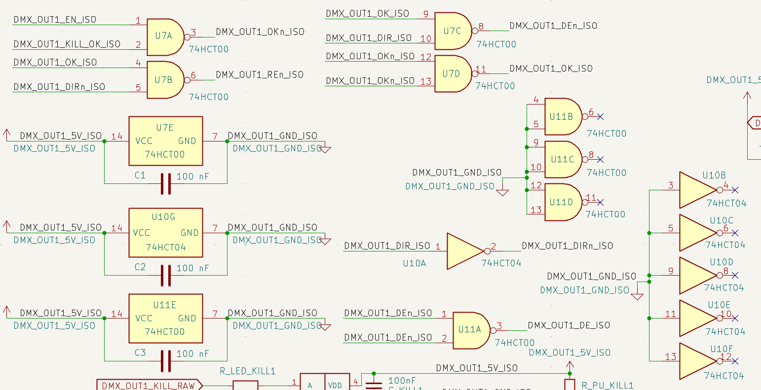 Was ich an diesem Board übrigens absolut spitze finde und auch selbst durch den Hinweis verstärkt beherzigt habe: - sehr feine DMX-Isolation - sauber, übersichtlich - kein unnötiger Schnickschnack - ideal als Referenz oder OEM-Modul Also das Board war schon der Auslöser für manche Änderungen. Die ERC von Kicad habe ich schon genutzt, offensichtlich falsch. Ich arbeite dran, aktuell mache ich noch die Umstellung auf die besseren Optos in der Out-Stufe und sobald das durch ist, klemme ich mich da nochmal ran.