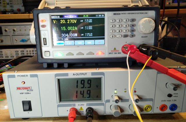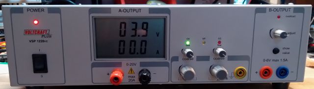 Hallo, hier ist ein Labornetzteil zu verkaufen mit 0,1V – 20V und bis zu 20A. Ein zweiter galvanisch getrennter Ausgang liefert 0-6V, max. 1,5A. Das Gerät ist in Ordnung und durchgemessen, siehe Bilder anbei mit 5V/1,5A am Zusatzausgang, sowie 20V/10A und 10V/20A mit Sense Leitungen. Ich denke 120,-€ incl. Versand innerhalb Deutschland sind angemessen für das Gerät. Gruß Bernd PS: Abholung / Übergabe im Raum Karlsruhe wäre mir am liebsten..