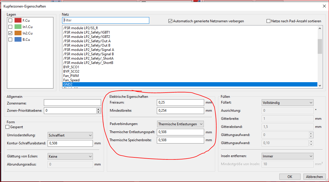 Auf die Kupferzone Doppelklick. Dann hier einstellen (Bild Anlage KIVAD 9). Sollte in KICAD8 ähnlich sein. Dann "b" drücken, um die Zonen neu zu zeichnen.