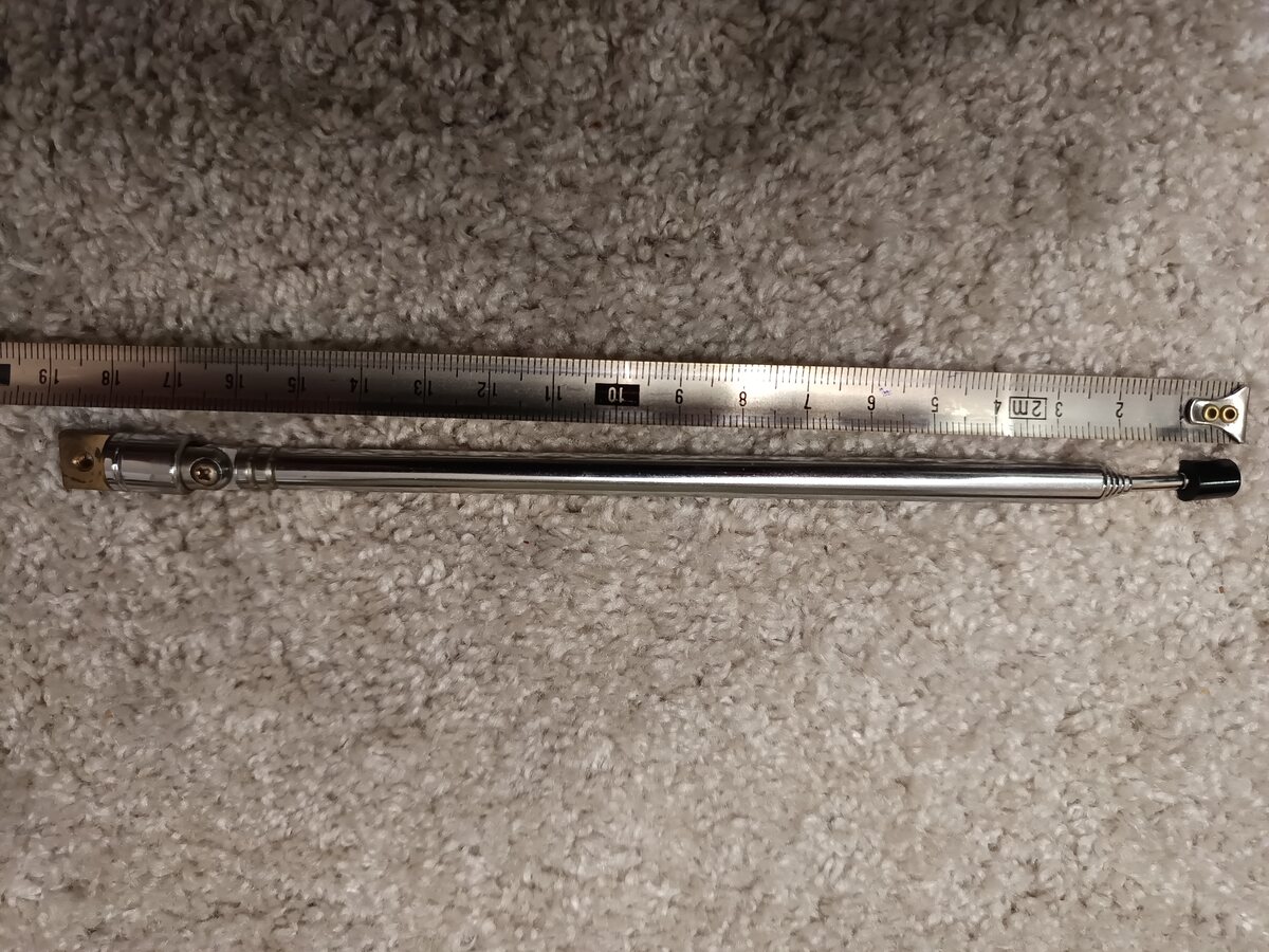 Ich suche 2 identische Teleskopantennen für ein Hitachi CKP 110. Ich bräuchte nur die Antenne ohne Halterung. Vielleicht hat jemand was ähnliches. Auf AliExpress stimmen die maße leider selten überein und ich mag nicht 10 mal bestellen und wieder zurücksenden. Größter Durchmesser: 7mm Kleinster Durchmesser: 2mm eingefahrene länge (ohne Halterung): 17cm Ausgefahrenen länge: 80cm Die maße müssen nicht zu 100% stimmen.
