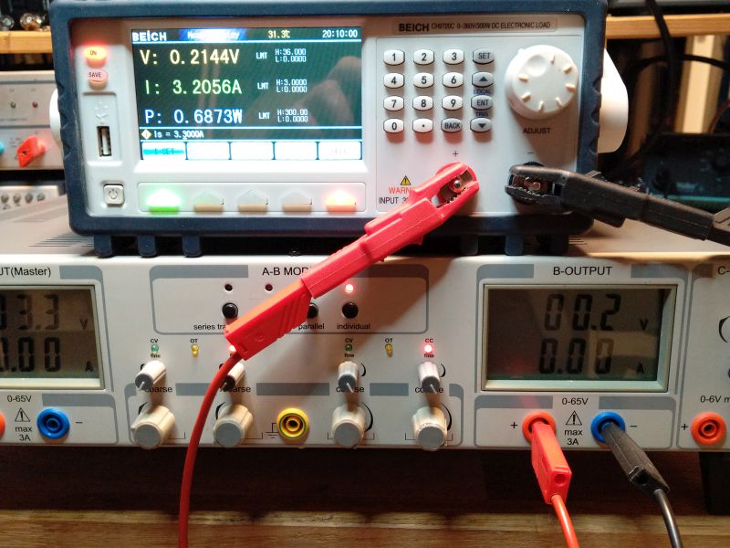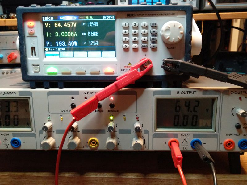 Hallo, hier ist ein Labornetzteil zu verkaufen VSP 2653HE mit 2 x 0 – 65V und 0-3A. Ein zweiter galvanisch getrennter Ausgang liefert 0-6V, max. 1,5A. Das Gerät zeigt folgendes Verhalten: A-Output Spannung bleibt bei 3,3V stehen, die CC LED leuchtet dauerhaft. B-Output Spannung bis 65V ok, Strom bis 3A ok. Die Überstrombegrenzung setzt bei ca. 3,2A ein. Die Stromeinstellung mit den beiden Potentiometern reagiert für meine Begriffe etwas „wackelig“. d.h. der Einsatz der Strombegrenzung ist mit einer relativ großen Hysterese behaftet. Eindruck ist, da wackelt irgendetwas. Die Stromanzeige am Gerät funktioniert nicht. C-Output Funktioniert ohne Einschränkung, Das Gerät ist unverbastelt, d.h. es wurde kein Reparaturversuch unternommen. Die Reparatur dürfte relativ gut vonstattengehen, da die PFC Stufe offensichtlich in Ordnung ist und die beiden Regler identisch aufgebaut sind. Im Netz habe ich Pläne gefunden von Geräten aus der gleichen Serie – die alle – bis auf einige Werte gleich aufgebaut sind. Ich denke 90,-€ plus 10,-€ Versand sollte dafür ein fairer Preis sein. Gruß Bernd