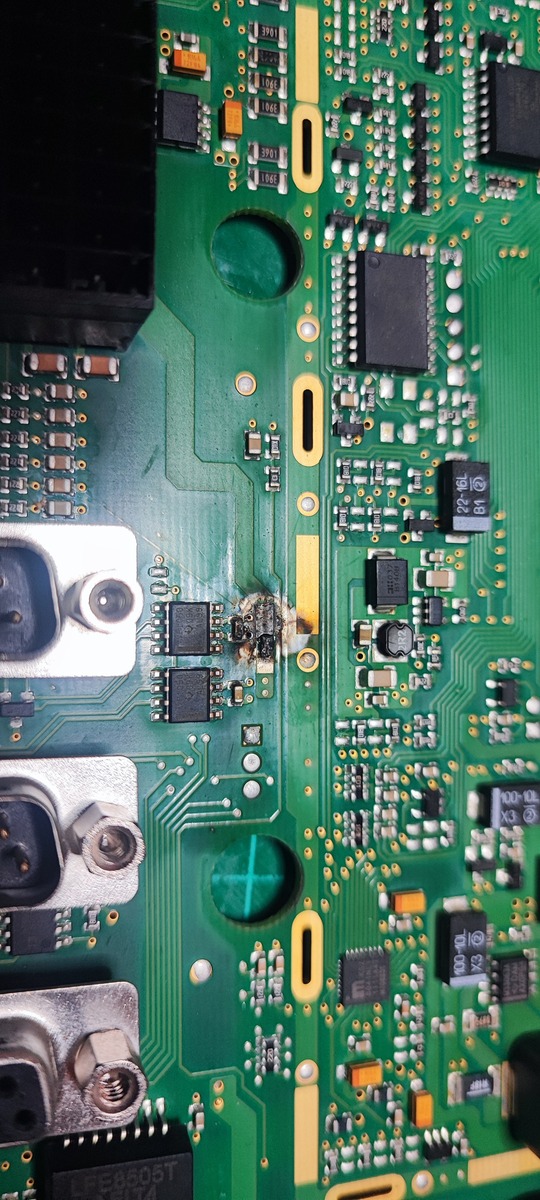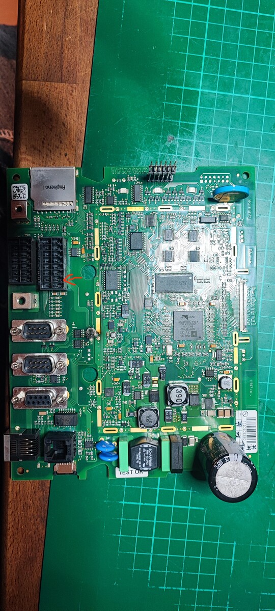 Bei dem Pin mit dem roten Pfeil ist die Spannung in die Platine gegangen und bei einem Bauteil was ein paar Cent kostet würde ich die Reperatur auf jeden fall probieren. Die Steuerung kostet neu 1700euro.