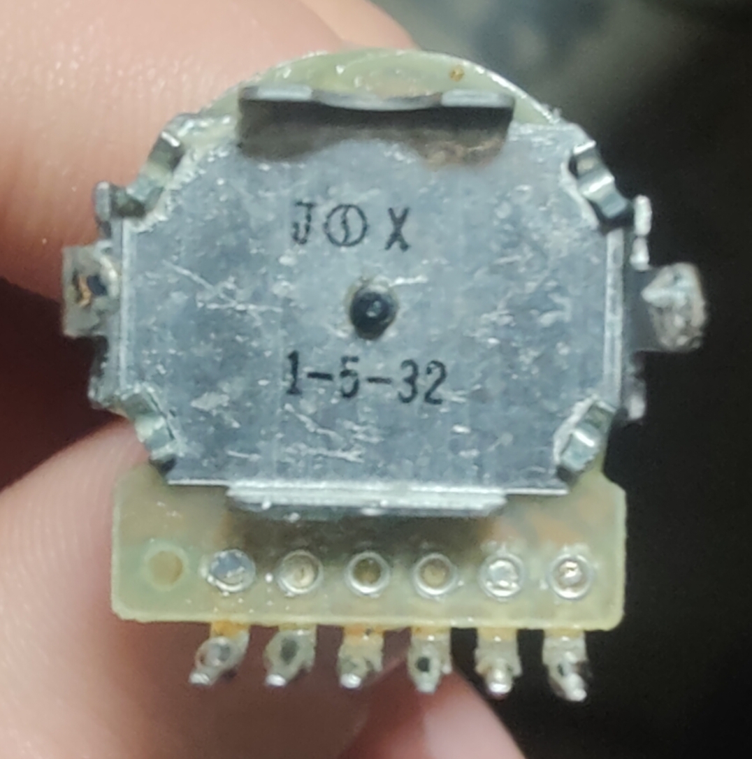 Auslöten und schauen ob eine Typenbezeichnung vorhanden ist. Alternativ ein orginales Ersatzteil kaufen oder vorsichtig öffen und dann versuchen dieses zu reinigen etc. Scheint ein mechanischer Schalter mit mehreren Schaltstellungen / Schaltgruppen zu sein.