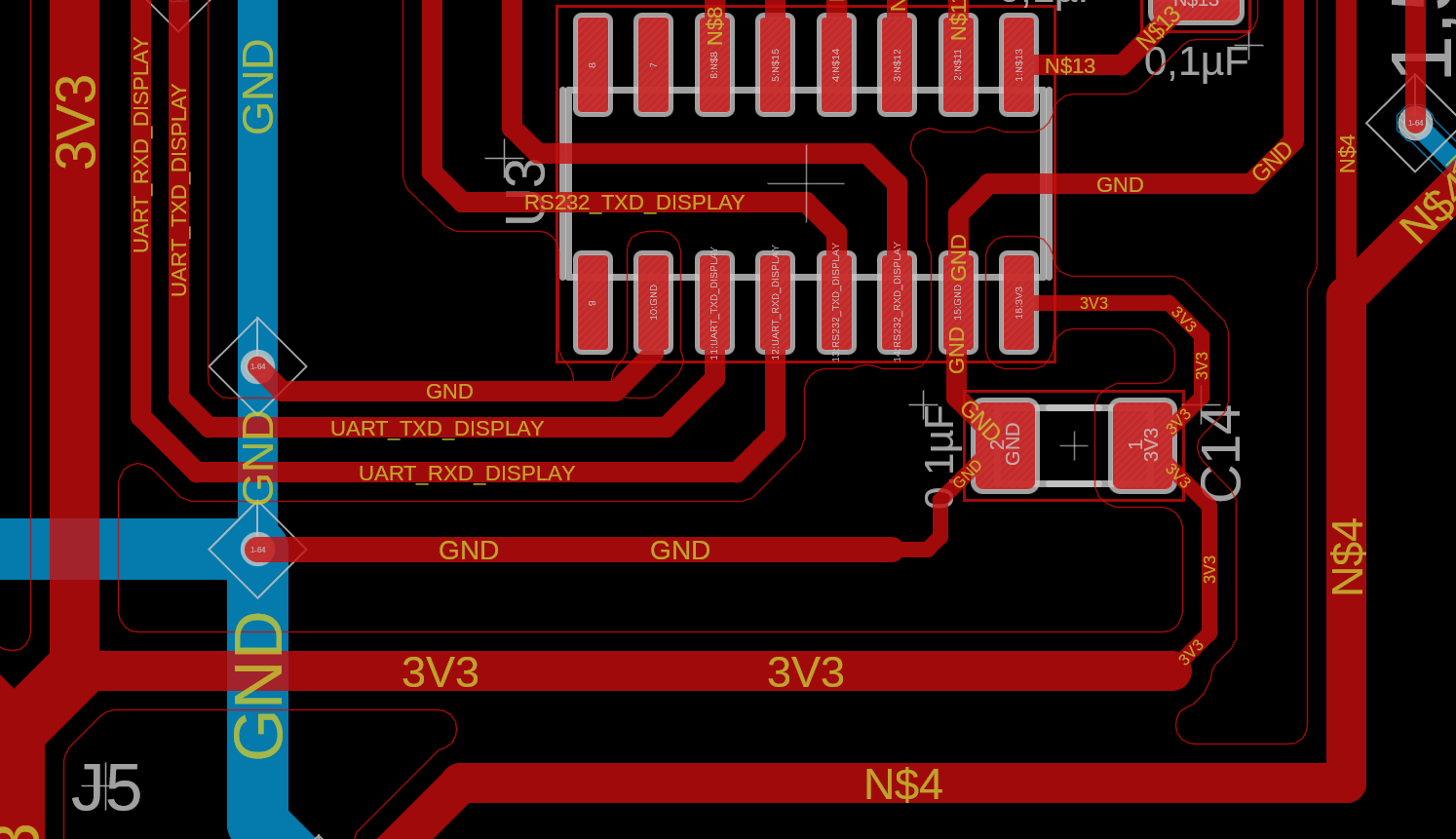 Das mit den Antennen leuchtet ein. Danke Wäre es denn sinnvoller auf die GND Flutung des TOP-Layer zu verzichten? Ein anpassen der Flutung wäre möglich, aber der Durchblick mit den Leiterbahnanbindungen zu den Abblockkondensatoren geht mir immer weiter verloren. Bei bei JLCPCB konnte ich zwischen 2 lagig für ~9€ und 4 lagig für ~ 35€, bei gleicher Platinengröße und sonstigen Optionen wählen. Wenn du noch einen Tipp hast wo ich als Privatperson 4 lagig, zu moderaten Preisen, fertigen lassen kann dann her damit.