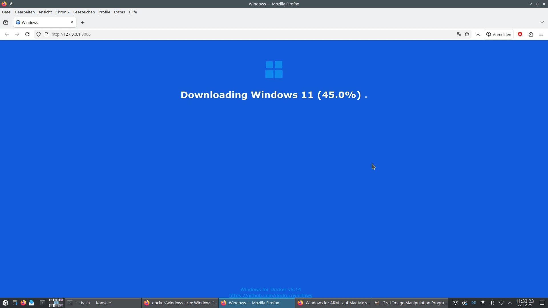 Rbx schrieb: > Ach, der will ja nur labern. Zum Ausprobieren, wie wohl > https://github.com/dockur/windows-arm läuft, wäre der sich auch zu fein, > ganz abgesehen von noch ganz anderen bewährten Möglichkeiten. Ach, zu fein eher nicht, allerdings... ich habe kein Windows und möchte auch keines haben, zudem mangelt es mir an einer ARM-Maschine (mit der Ausnahme einiger Raspberry Pi 1 bis 5, von denen ich jedoch annehme, daß ein Windows auch dann nicht darauf laufen würde, wenn ich eines hätte). Allerdings... update: der Docker Hub hat anscheinend ein X86-Image, das auch unter Linux zu laufen scheint... okay, zumindest lädt der Container ein Image von Microsoft Windows und ich bin gespannt, was danach passieren wird, siehe Anhang. Spannend, bisher war mein Kenntnisstand, daß Windows-Container nicht unter Linux lauffähig seien. Wenn das mittlerweile funktioniert, muß ich mir wohl ein Problem für diese Lösung suchen... hast Du eine Idee? :-) Update: jetzt "Installing Windows 44% complete"... ui.
