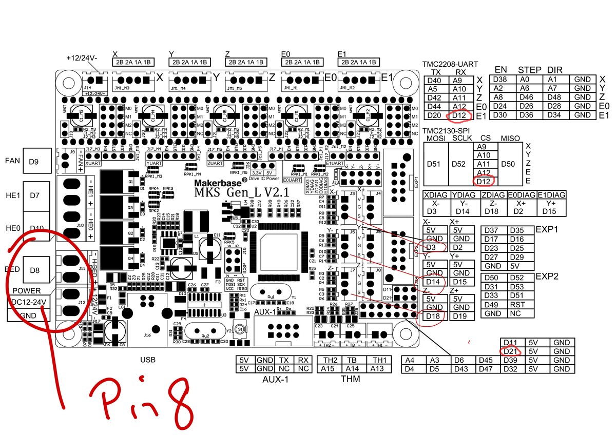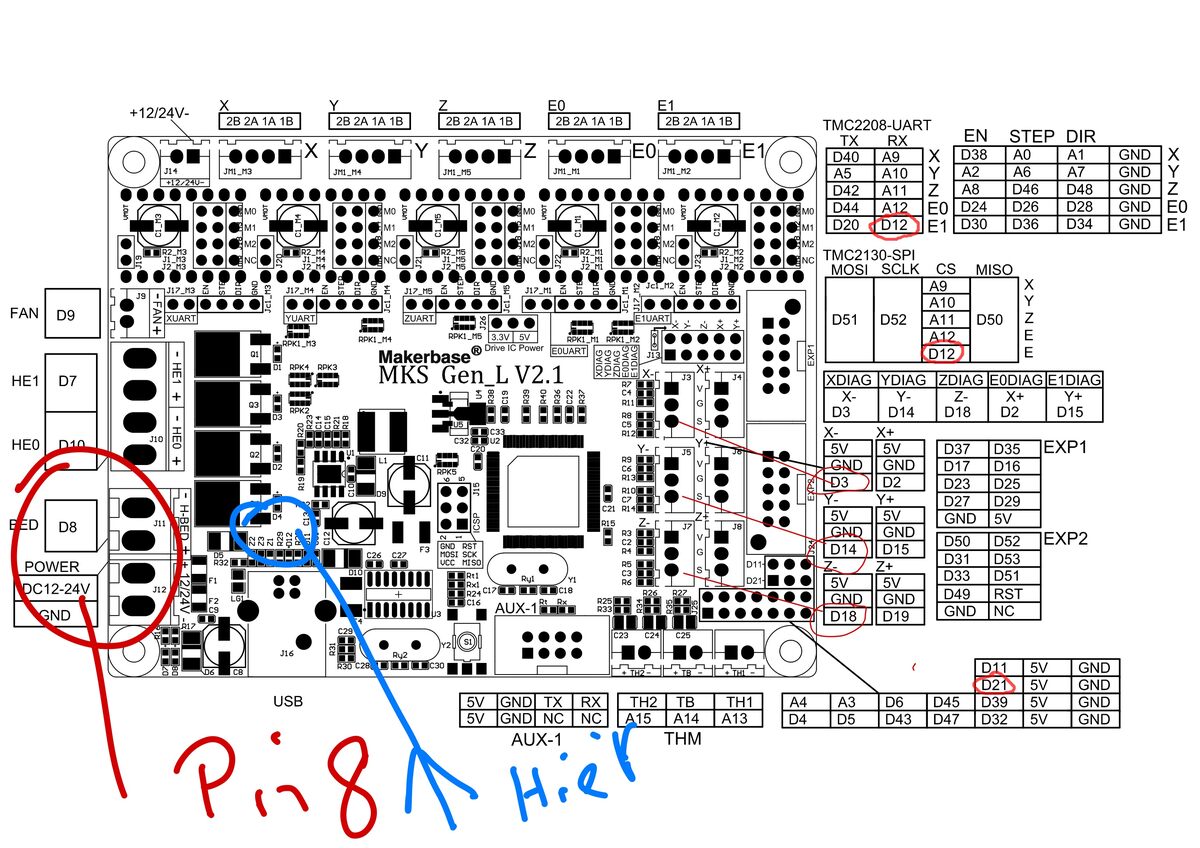Das MKS Board wird doch mit 24 Volt betrieben oder kommen die dann an dem, benutzten, Pin 8 nicht an?