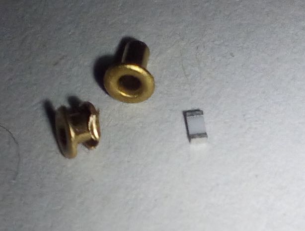 So jetzt ... FAST! Erst mal bitte ich um Entschuldigung. Das hat länger gedauert als geplant. Mir ist privat was Übles dazwischen gekommen. :-( Und es geht erst ein Werkzeug, das für die 1.3 * 2.5 mm Niete. Das Werkzeug für die kleinen muss ich Montags machen. Das WZ für 1.7 * 4 klappt nicht, weil der Niet am offenen Ende zusammengezogen (kleiner Drm) ist. Da muss ich den kleinen Zapfen konisch machen. Also auch Montag. Weil das tendentiell fummelig in der Anwendung wird, würde ich den Niet auf das Unterteil evtl. mit Flussmittel festkleben. Zu den Bildern: WZ1: Die Niete 1.3 * 2.5. Einmal umgefalzt. Weil da keine Platine drumrum ist, reisst sie ein. Und bei der Herstellung wird das Messing hart (ja, ist Messing). Müsste man eigentlich weichglühen. Zum Vergleich ein 0603 Widerstand. WZ3: Noch mit dem "großen" Niet 1.7 * 4. Man sieht (eventuell), dass der Schaft am Ende eingezogen ist. WZ4: Leider unscharf. Oben das Oberteil (zum Halten in der Hand) und das Unterteil (in Schraubstock einspannen). Dafür könnte ich noch einen einfachen Halter bauen. WZ2: Links Unterteil (der Zapfen ist 0.5 mm lang) und rechts Oberteil (der Zapfen ist 1 mm lang). Und ein 0603 zum Vergleich. Hätte ich doch lieber auf der CNC machen soll (B620YS oder B550YS). Aber ich wollte keine umbauen (nicht ganz so schlimm) und die laufen weiter nachdem ich Richtung Heimat unterwegs bin. Also müsste ich letztendlich zweimal umbauen. Ausser ich mach 100 Stück, dann ist es mir egal.
