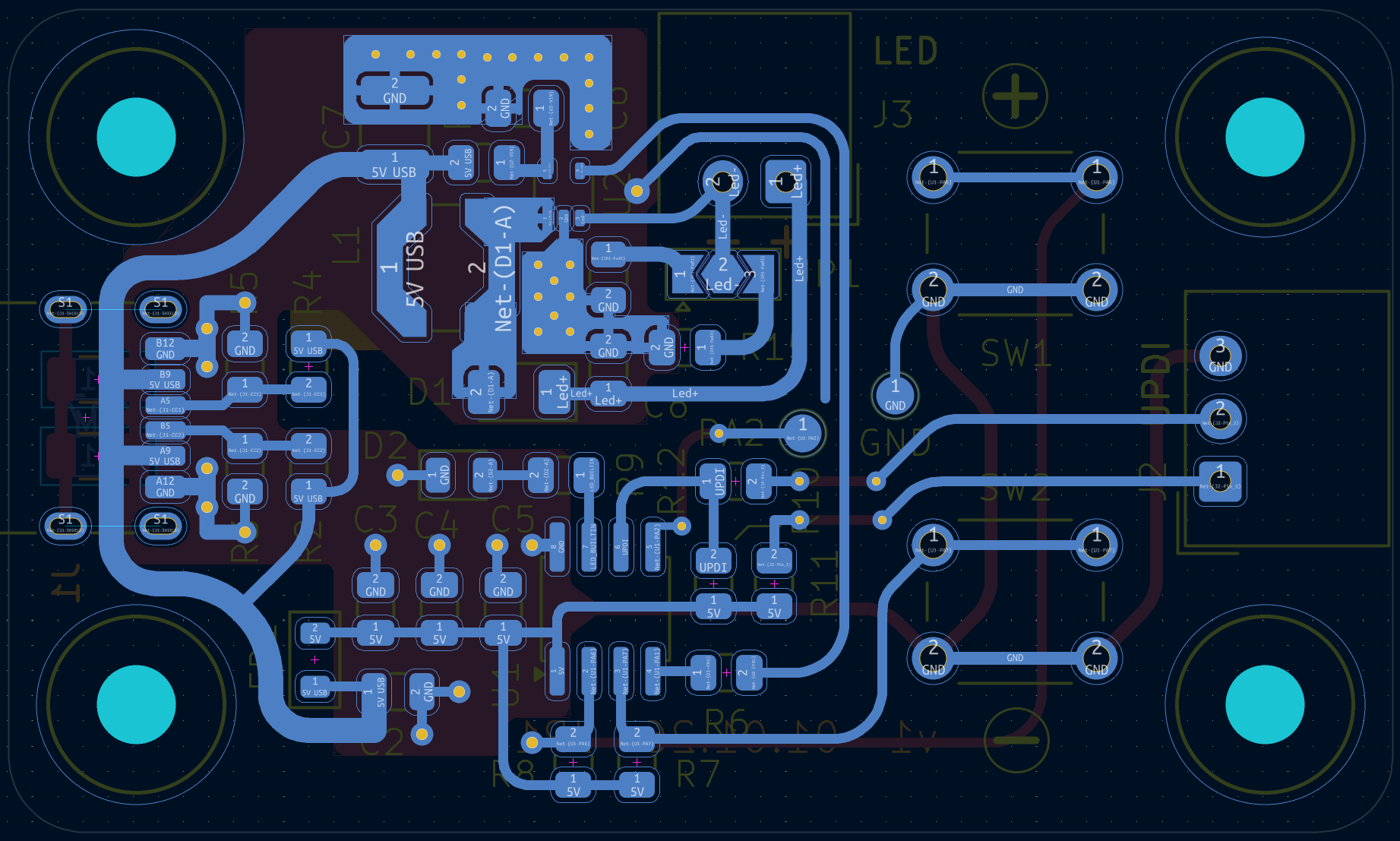 Hallo, Platine ist bestückt und es liegen keine 5V am USB-C an. Warum das? Ich verwende ein Handynetzteil mit USB-A Buchse und Kabel auf USB-C. Das Handy wird geladen. An meiner Leiterplatte liegen jedoch keine 5V an. Ich habe 2 verschiedene Ladenetzteile. Einmal eins welches nur 5V ausgeben kann und ein 40W was bis 10V ausgeben kann. Mit keinem von beiden liegen bei mir 5V an. Als ob die nicht wissen das sie 5V ausgeben sollen. Meine USB-C Bestückung ist für bis zu 900mA vorgesehen. Was habe ich falsch gemacht? Die USB-C Buchse eine 6 polige.