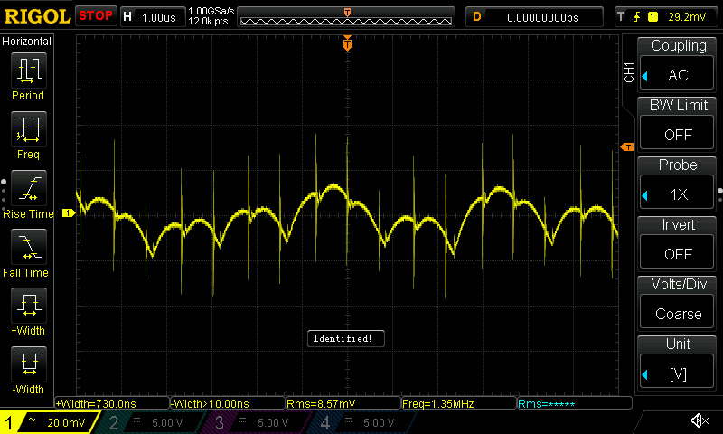 Der Störsender versteckt sich in den Spikes. Versuch das mal mit der FFT im Oszi darzustellen. Startfrequenz: DC Stopfrequenz: 10 MHz bis 1 GHz Y-Verstärkung: so hoch wie möglich und Zeitachse (X) 100 ms (oder mehr) Ich könnte Dir auch ein paar Nahfeldsonden ausleihen.