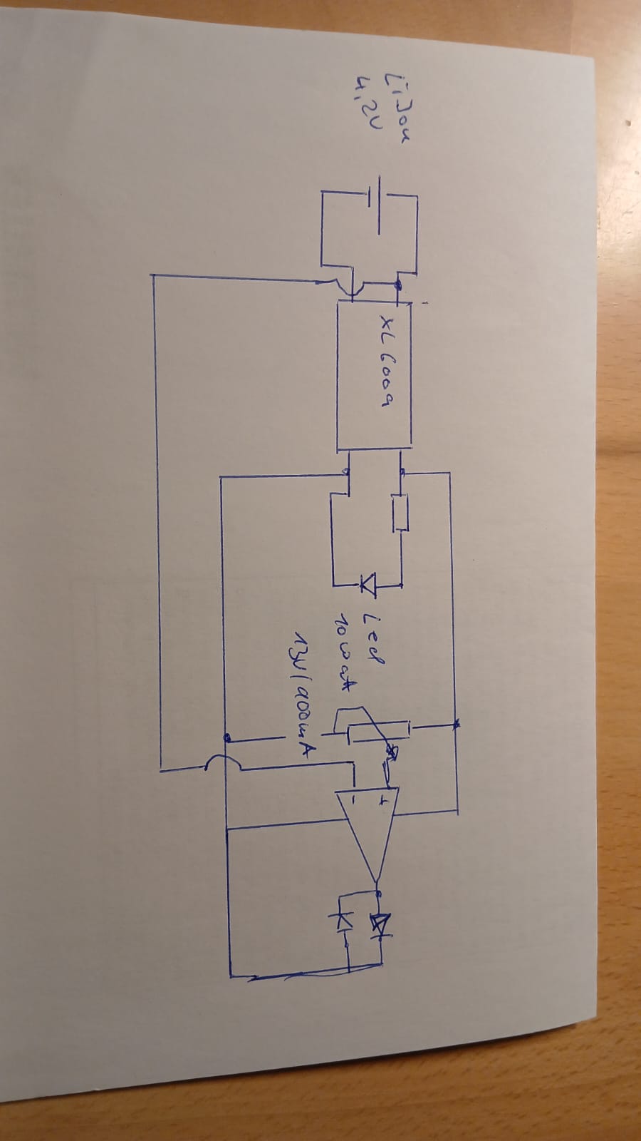 Betreibe eine 10 Watt LED an einer LiIon Zelle mit DCDC Wandler. Dabei würde ich gerne die Spannung mit einem Opv messen und eine Abschaltschwelle einstellen. siehe Skizze. Kann das funktionieren ?