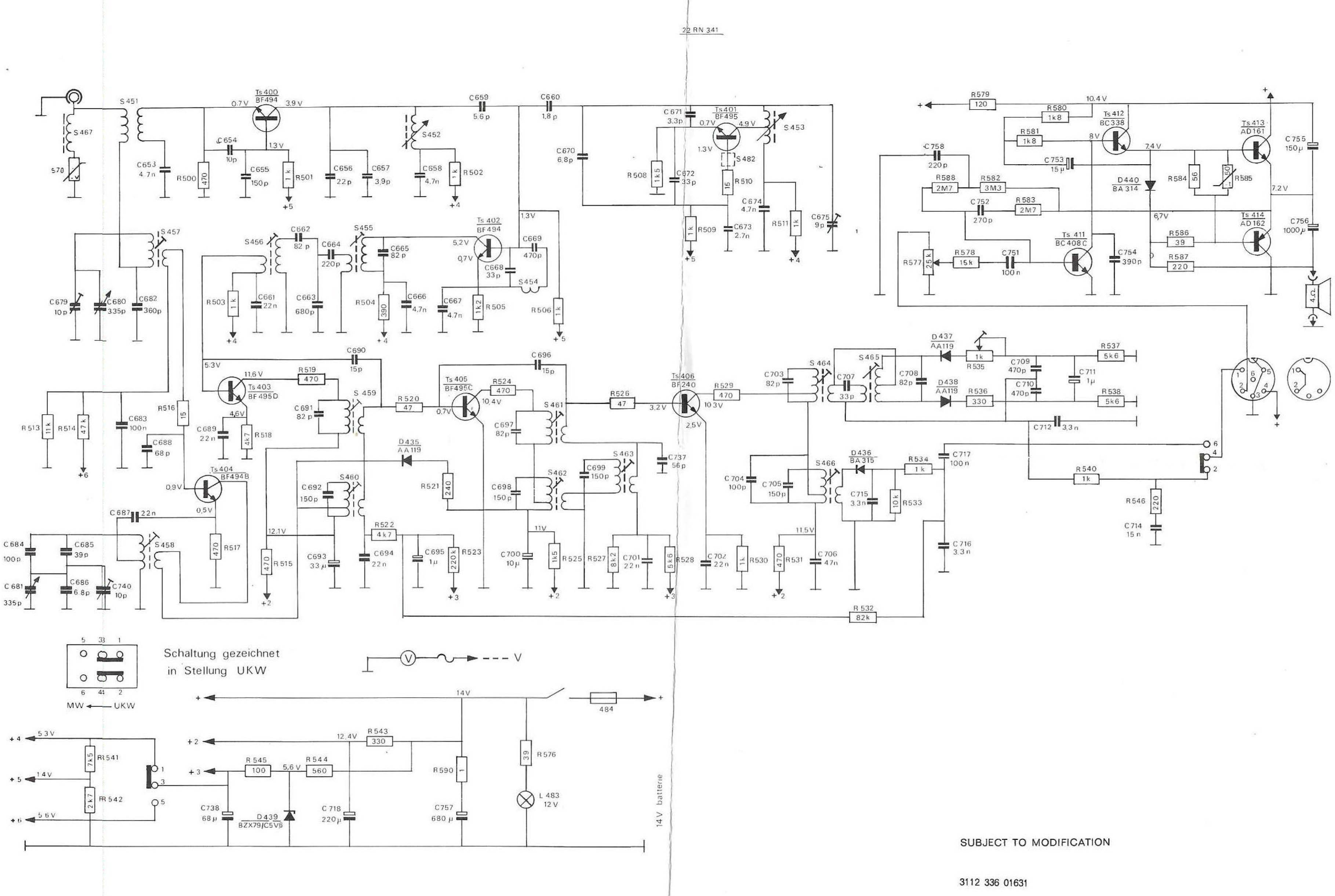 Uwe B. schrieb: > Bei dem Schalter UKW/Mittelwelle. Etliche Male umschalten um die in > Jahrzehnten gewachsene Oxidschicht zu durchbrechen, bei Erfolg etwas > (Tuner-) Kontaktreiniger nutzen. Habe den Schalter sicher 30-40 mal betätigt, Erfolg blieb aus. Ich habe angefangen die Spannungen zu messen, doch fällt es mir schwer, weil die Bauteile im Radio nicht beschriftet sind. Ich weiß zwar, dass über R543 1,6V abfallen müssen und danach die 12,4V an diverse Stellen geht, ich weiß aber nicht, wo dieser R543 ist. Mit etwas hin- und herschauen und Leiterbahnen verfolgen geht das zwar irgendwie, doch das scheint mir die Nadel im Heuhaufen zu sein. Ich habe mal die Spannungen am BF240 gemessen, weil ich da gut dran komme und dort stimmt keine der 3 Spannungen. Habe beim Brummtest mal lauter und leiser gedreht und das Brummen wird auch lauter und leiser. Also das Laustärkepoti ist absolut in Ordnung und kratzfrei.