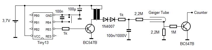 Ich möchte die folgende Schaltung von B.Kainka nachbauen https://www.elektronik-labor.de/Projekte/Gamma9.html er erzeugt damit die Hochspannung für ein Zählrohr. Muss da nicht parallel zur Primärwicklung des Hochspannungstrafos eine Freilaufdiode rein?