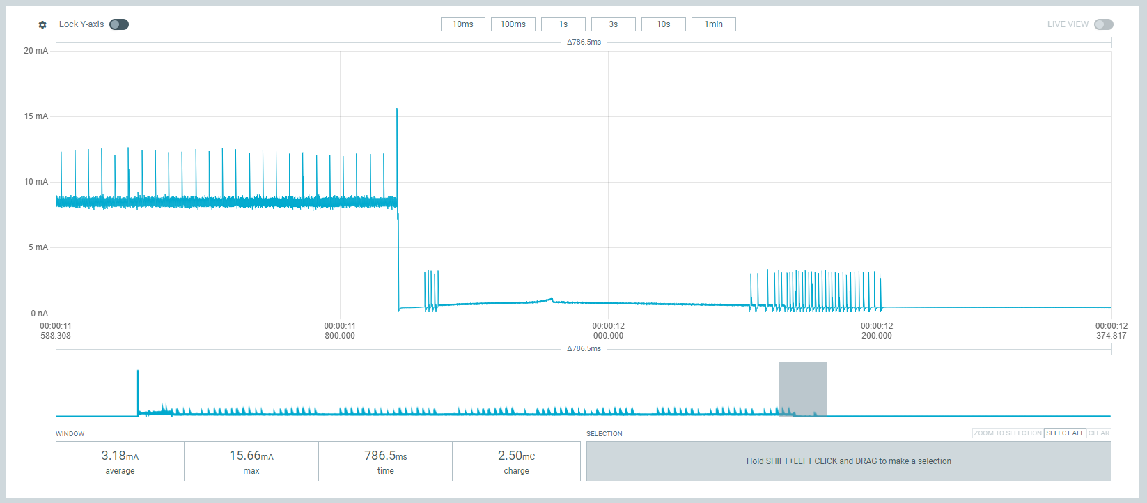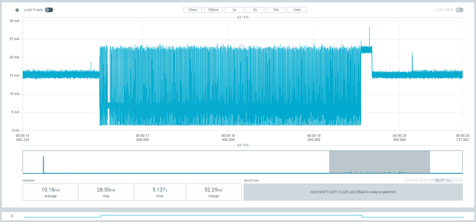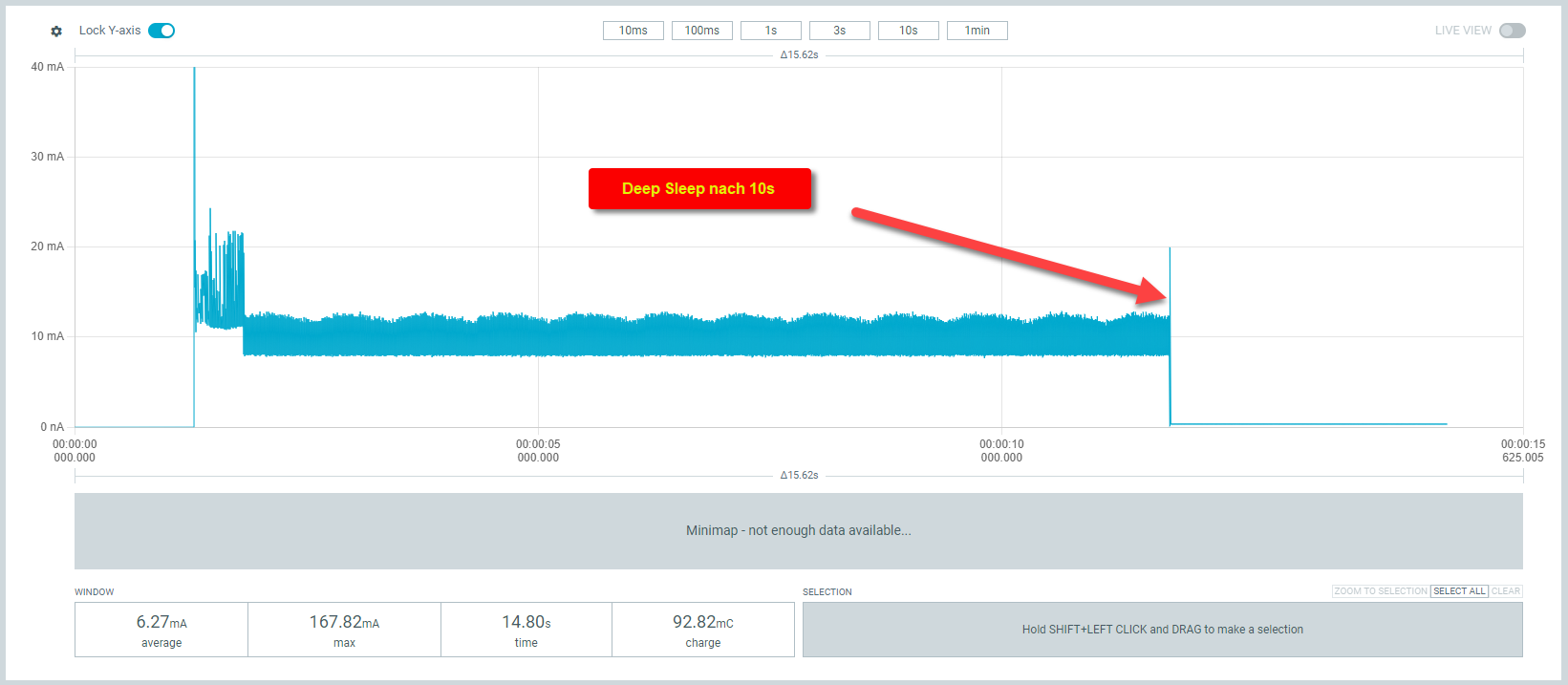 Hier hätte ich erwartet das die Stromaufnahme deutlich sinkt, tut sie