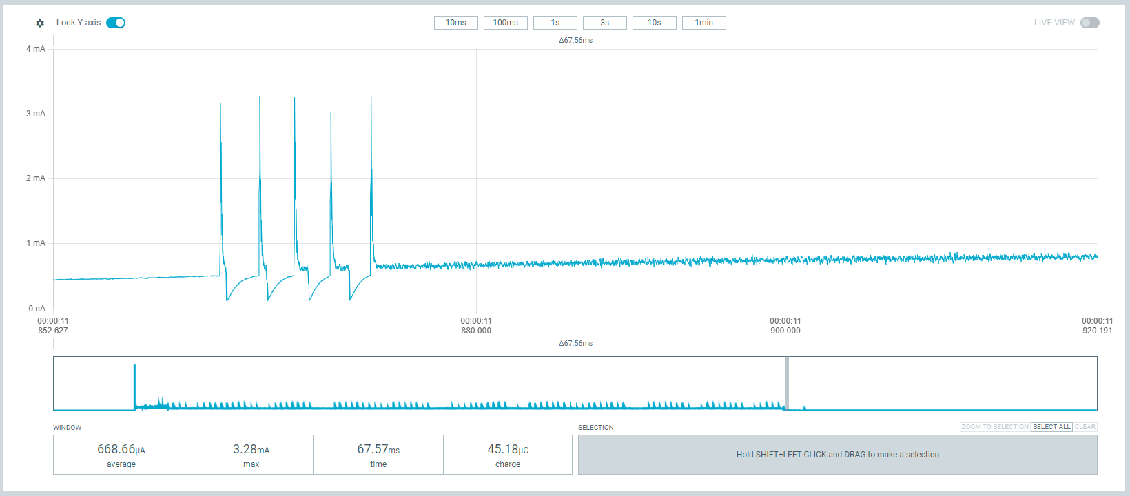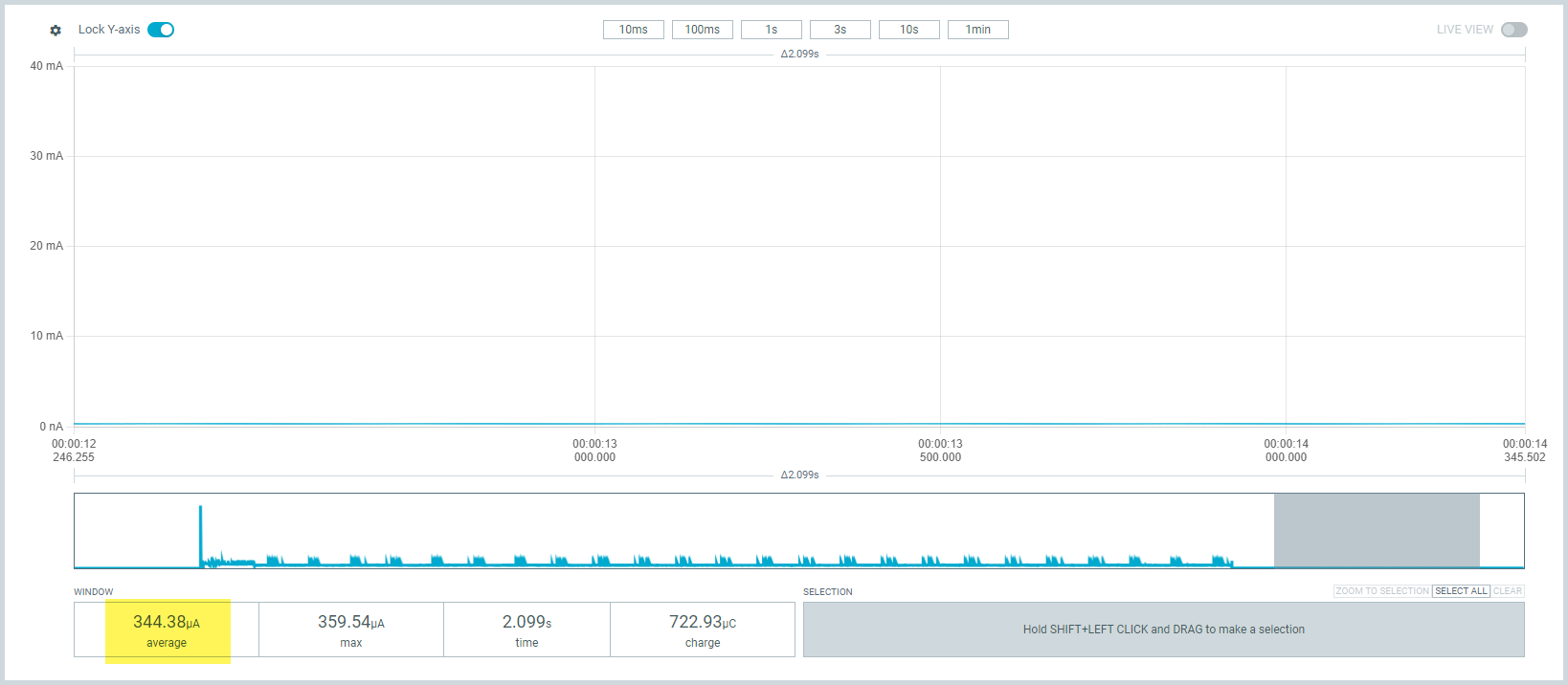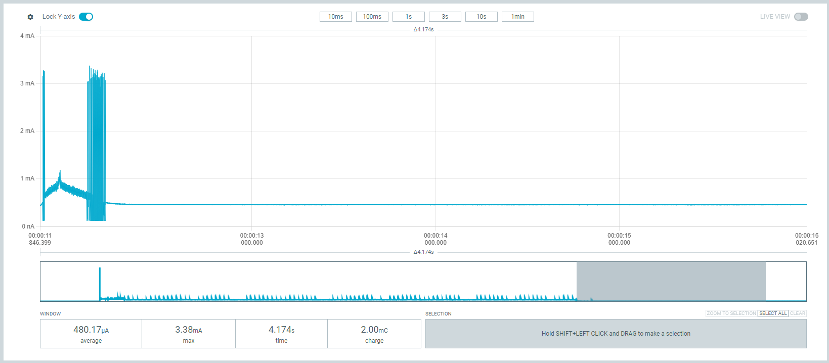 Hier hätte ich erwartet das die Stromaufnahme deutlich sinkt, tut sie