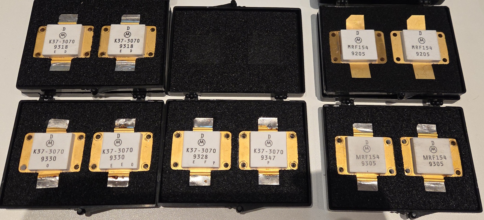 Hallo zusammen, verkaufe wie im Anhang zu sehen K37-3070 Transistoren und MRF154 N-Channel Mosfet. Ich weiß das diese Bauteile extrem rar sind und sehr teuer gehandelt werden. Nun biete ich für wirkliche Interessenten ein Schnapper an... MRF154 neu liegt bei Mouser 774,71 € !!! Der K37-3070 Transistor bei der Bucht, für etwa 300€ !!! Ich habe diese von meinem Vater erhalten und kann diese nicht gebrauchen. Nun stehen diese hier zu Verkauf an. Wenn Ihr mir sagt wie ich diese Testen kann. Kann ich gerne Messungen durchführen. - Multimeter + Labornetzteil habe ich. Es wäre schön wenn jemand Interesse immer an 2 Stück hätte. Somit könnte ich es in der ESD Schachtel versenden. Preis ist Verhandelbar (Privat bitte). Keine Garantie und Gewährleistung! Gruß Daniel