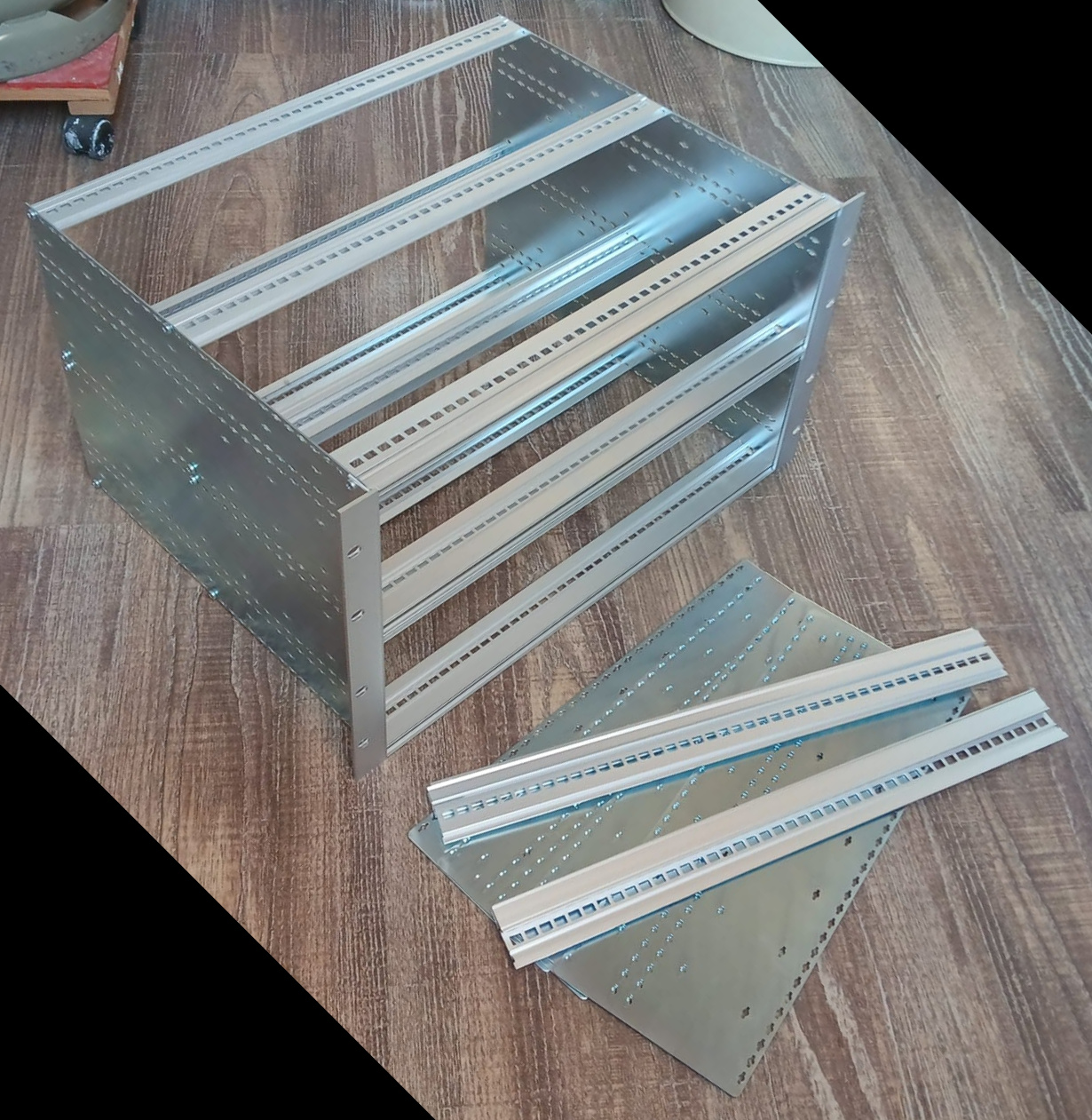 Ob die Bezeichnung so korrekt ist, weiß ich nicht, aber es gibt ja ein Foto. Zusätzlich 4 Seitenbleche, so daß der Träger als 2 einzelne mit einfacher Höhe aufgebaut werden kann und 2 weitere Schienen. Die vorderen Schienen des zusammengebauten Trägers hat 4 Gewindestreifen drin, hinten sind im obersten und untersten einer drin. 60€ + Versand nach Wunsch .... oder macht mir ein Angebot (ein Profil kostet um die 12€ neu!) Bezahlung per Paypal Kontakt via PM mit Mailadresse Versand erfolgt zerlegt!
