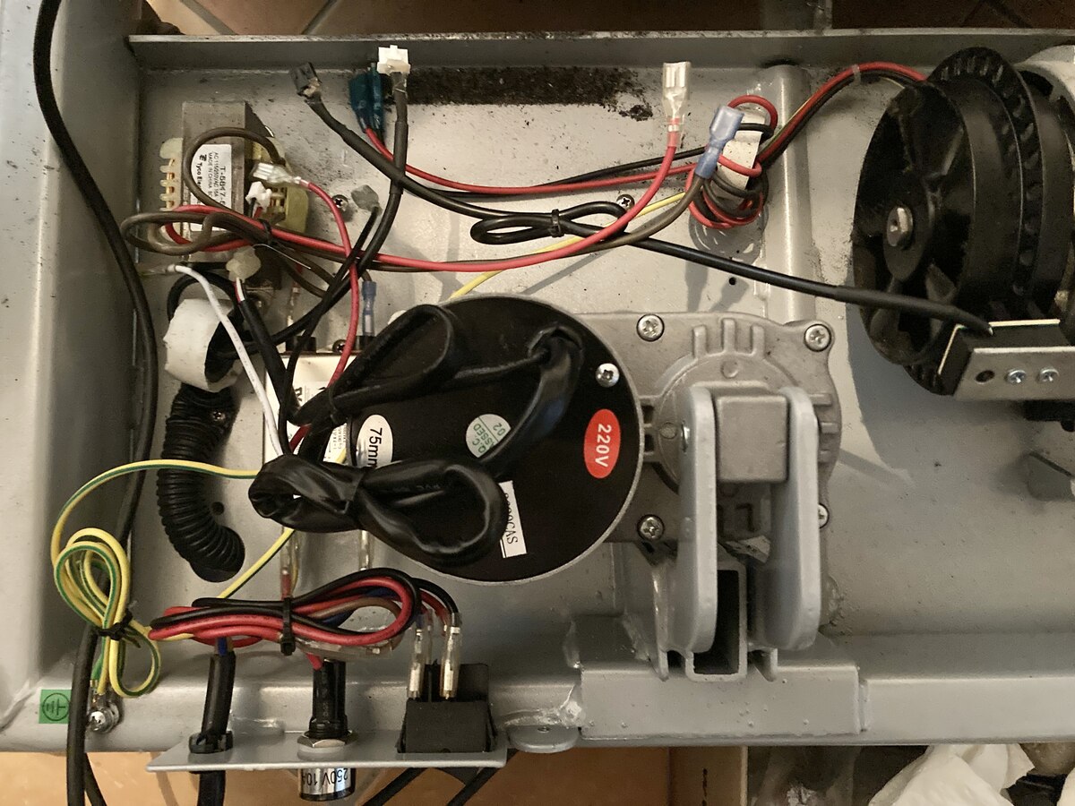 So schaut der Motor aus und der "Rest" vom unteren Leistungsteil. Laut dem Fehlercode könnte der Motor ja hin sein? Meinen Berechnungen zufolge müsste der 5-6 Ohm Durchgang haben. 3-4 Ohm habe ich gemessen, aber mit einem etwas sehr einfachen Multimeter.