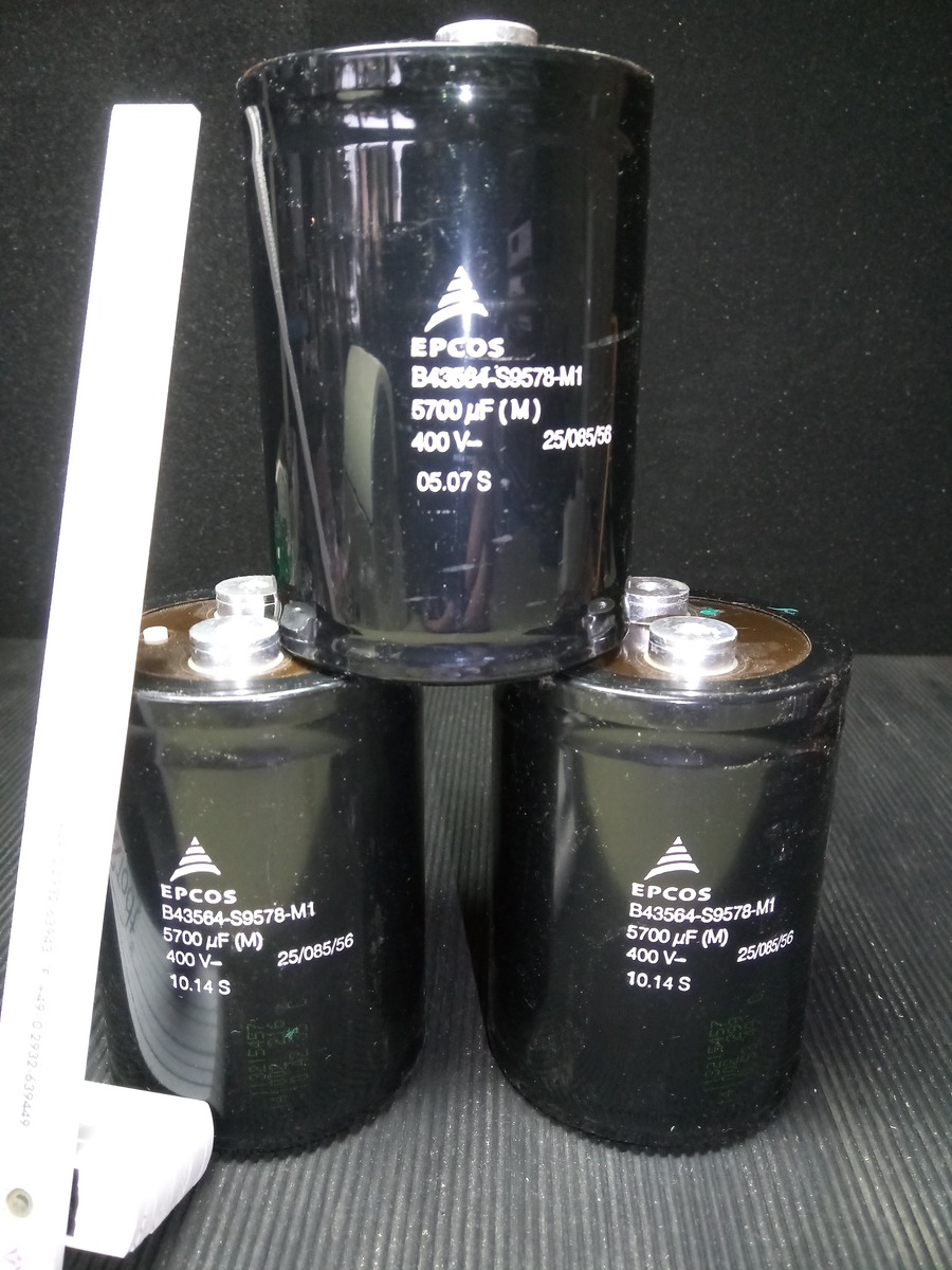 Ich biete Elkos zum Verkauf an: Epcos B43564-S9578-M1 5700µF 400VDC 85°C Gebraucht Mit Schraubbefestigung M6 Stück: VHB 10 Euro. Es sind 7 Stück vorhanden. Bezahlung nur mit Pay-Pal Versand mit Sendungsverfolgung 7,69€