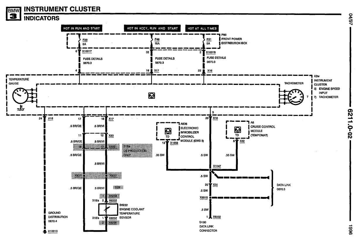 Vorsicht! So einfach wird es nicht unbedingt sein. Dem Schaltplan nach sind das wegen der vier Anschlüsse entweder open Air core OAC) Typen oder Scitec Schrittmotore auf Basis von X25.168. OAC Instrumente funktionieren auf Strom-Basis wo der Anzeigewinkel abhängig vom Verhältnis Sinus und Cosinus des Treiberstroms. Es gibt spezielle SPI ansteuerbare ICs dafür von Allegro oder T.I. Ob sie leicht erhältlich sind, entzieht sich mir momentan. Manche dieser ICs können gleichzeitig mehrere Instrumente ansteuern. Dann gibt es die Scitec X25 Serie. Die funktionieren als Schrittmotor mit mechanischen Referenz Anschlag und haben meist eine 180:1 Zahnraduntersetzung. Diese Schrittmotoren funktionieren auf Basis von Lavell, ähnlich wie sie in Analoguhren eingesetzt werden. Die X25 haben 1080 Schritte für eine fanze Umdrehung, obwohl das wegen des mechanischen Anschlags nicht ausgenützt werden kann. Es gibt auch für sie spezielle Treiber Ics die zum Teil auch mit Mikroschritten ansteuern. Ich baute mir auf dieser Basis einen Wasserstandsanzeiger (Forum) und steuerte sie in FW an. Man kann durch geeignete Ansteuerung und Programmierung ein lebensechtes Anzeigeverhalten mit angenehmer Dynamik erzielen. Beim Einschalten fährt man den X25 zum Anschlag, setzt dann den Anzeigewert auf Null und fährt dann mit Open Loop. Für den X25 gibt es fertige Bibliotheken für AVR. Ob BMW das anders macht, weiss ich nicht - Vermute aber, dass es X25 Basis ist, weil OAC eher in amerikanischen Fahrzeugen verwendet wurden. Hoffe mein Beitrag nützt. Kann mich natürlich komplett irren. Gerhard Nachtrag: ich merke gerade, dass es nicht um Eigenansteuerung der Instrumente geht, sondern um die Signalaufbereitung in die schon vorhandene Elektronik. Da uC Ansteuerung sehr einfach ist, kann man alles komplett selber entwickeln.