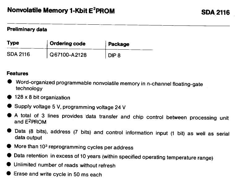 Biete an: EEPROM SDA2116 (DIL, NOS). Info siehe Bild. 29 stck. sind vh. Stückpreis 2,- , alle 29 Stück für 40,- (+ Versand). Bei Interesse PN mit email-Adresse.