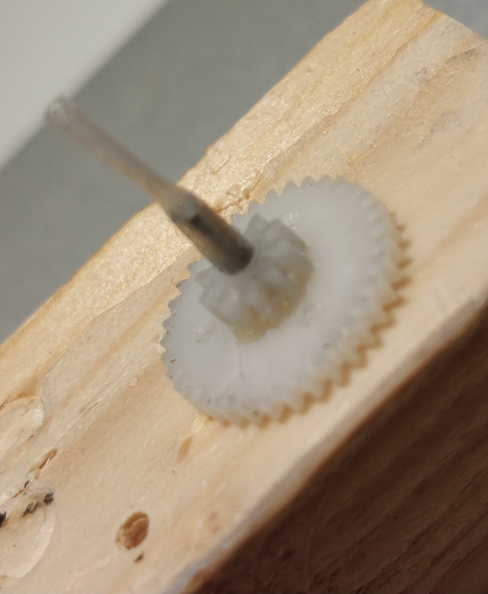 Ein anderes passendes Zahnrad aus der Sammlung (TM) etwas dünner gemacht und mit Uhu EF300 drauflaminiert...mal sehn 🤓🫣 Klaus.