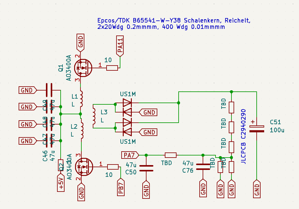 gebliebenem timer im uC die beiden MOSFETs abwechselnd. Sekundärspule