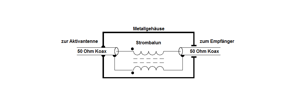 Günter R. schrieb: > DA bin ich nicht einverstanden: auf Grund des angegebenen Wickelsinnes > ist es doch bereits ein sog. Strombalun... Ich sehe L4 als Spannungsunun. Die Schleife ist einseitig geerdet und, genau wie die Verstärkermasse auch, direkt mit dem Schirm des Koaxialkabels verbunden. Eventuelle Störungen/Mantelwellen auf der Außenseite des Schirms gelangen ungehindert in den Verstärker und letztendlich zum Empfänger.