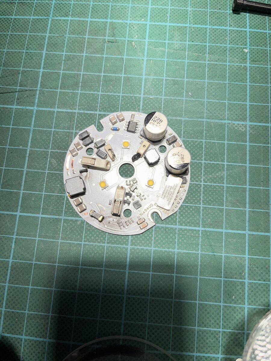Wenn das kleine IC auf ca. 5 Uhr (untere Kerbe) defekt ist, siehts schlecht aus. Sonst vielleicht noch machbar. Wofür ist das denn bei ner normalen LED-Lampe? Was ist dessen Beschriftuung?