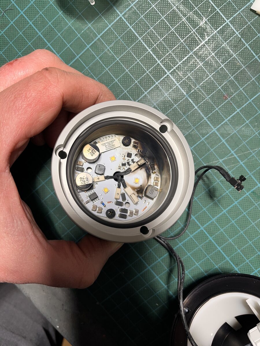 Ich habe hier eine tolle und teure Maschinenleuchte. Schnell an 230V angeschlossen und dann eingeschaltet. Hat einmal kurz geblitzt. Urghh. War leider eine 24V Version, darauf habe ich nicht geachtet. Offenbar fehlt ein bissl Kupfer auf dem PCB und eins dieser kleinen runden, länglichen Dinger sieht komisch aus. Kann mir jemand helfen das wieder in Ordnung zu bringen? Wie seht ihr die Chancen dafür und wie geht So ein LED Steuerbaustein idR. kaputt wenn er an so hohe Spannung angeschlossen wird? Die LEDs funktionieren übrigens noch. Hab ich kurz mit 3V am Labornetzteil getestet…