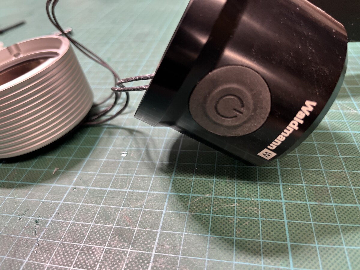 7W oder 8W ist die Angabe für die drei LEDs die da arbeiten. Ich schätze mal da ist einiges kaputt gegangen und habe den Hersteller mal angefragt. Falls es zu teuer wird, werde ich versuchen mit einem 2,2A (?) Treiber direkt auf die LEDs zu gehen. Ich glaube das ist das beste. Waldmann ist ganz stolz auf eine flickerfreie und besonders toll arbeitende Dimmung usw… Also genau diese Sachen werden bestimmt irgendwie kaputt sein. Die Metallbedampfung von innen konnte ich jetzt schön sauber kriegen.