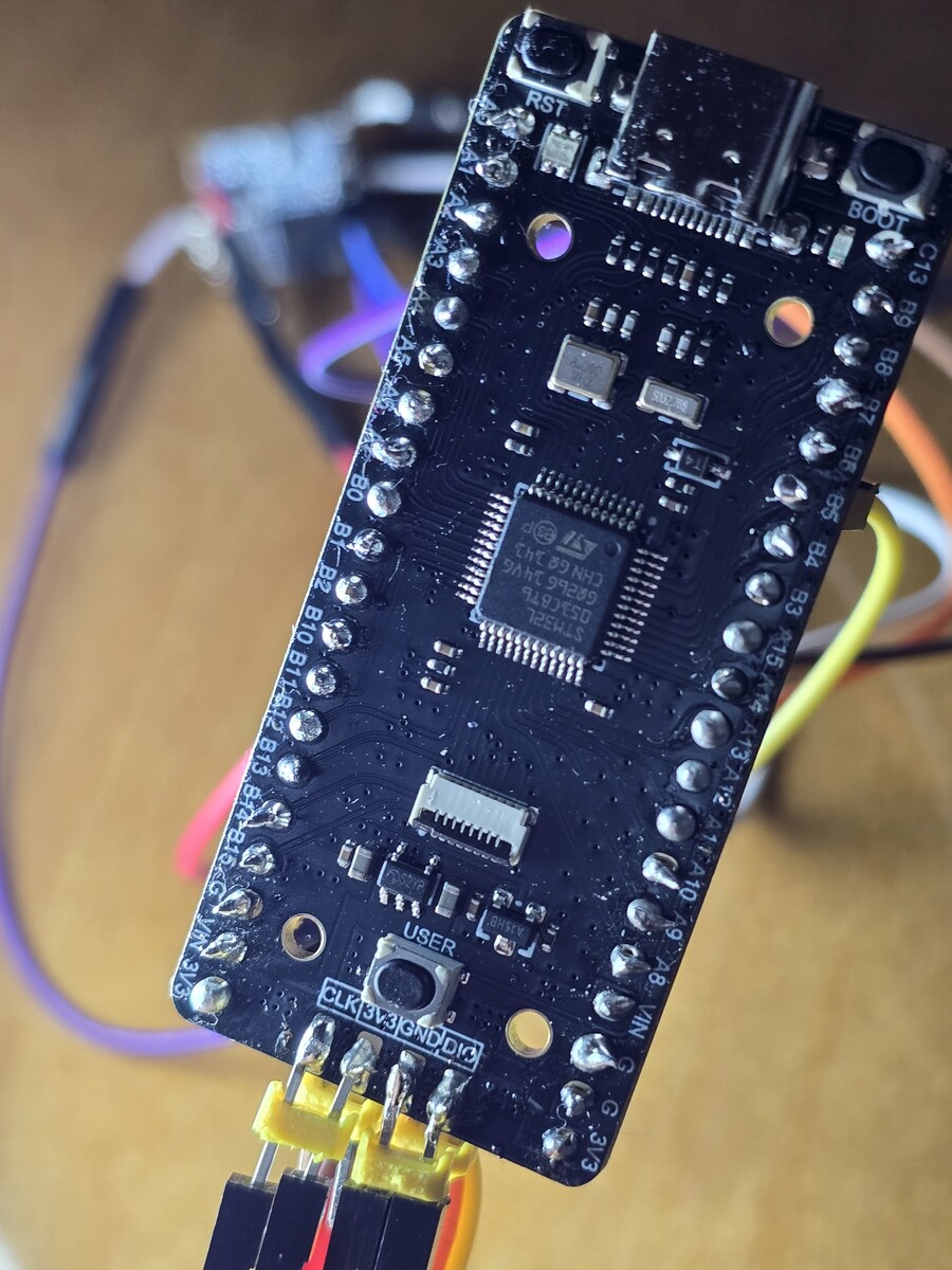 ok, mit dem STM32Cube tool scheint was gelaufen zu sein. Nur zu dumm, dass die KI mir jetzt erzählt ich kann meine SW nicht wirklich ausführen/testen was ich geflasht habe da 'There is no built-in USB-serial converter on your minimum system board'. Anscheinend bräuchte ich hier eine Art 'USB-TTL Serial Adapter' Voltage : 3.26V 21:39:52 : SWD freq : 4000 KHz 21:39:52 : Connect mode: Normal 21:39:52 : Reset mode : Software reset 21:39:52 : Device ID : 0x417 21:39:52 : Revision ID : Rev X 21:39:52 : Debug in Low Power mode is not supported for this device. 21:39:52 : UPLOADING OPTION BYTES DATA ... 21:39:52 : Bank : 0x00 21:39:52 : Address : 0x4002201c 21:39:52 : Size : 104 Bytes 21:39:52 : Bank : 0x01 21:39:52 : Address : 0x1ff80000 21:39:52 : Size : 20 Bytes 21:39:52 : UPLOADING ... 21:39:52 : Size : 1024 Bytes 21:39:52 : Address : 0x8000000 21:39:52 : Read progress: 21:39:52 : Data read successfully 21:39:52 : Time elapsed during the read operation is: 00:00:00.021 21:43:05 : Opening and parsing file: firmware.elf 21:43:05 : Memory Programming ... 21:43:05 : File : firmware.elf 21:43:05 : Size : 49.94 KB 21:43:05 : Address : 0x08000000 21:43:05 : Erasing memory corresponding to segment 0: 21:43:05 : Erasing internal memory sectors [0 399] 21:43:07 : Download in Progress: 21:43:14 : File download complete 21:43:14 : Time elapsed during download operation: 00:00:09.142 21:43:14 : Verifying... 21:43:14 : Read progress: 21:43:15 : Time elapsed during verifying operation: 00:00:00.912 21:43:15 : Download verified successfully 21:43:15 : RUNNING Program ... 21:43:15 : Address: : 0x08000000 21:43:15 : Application is running, Please Hold on... 21:43:15 : Start operation achieved successfully