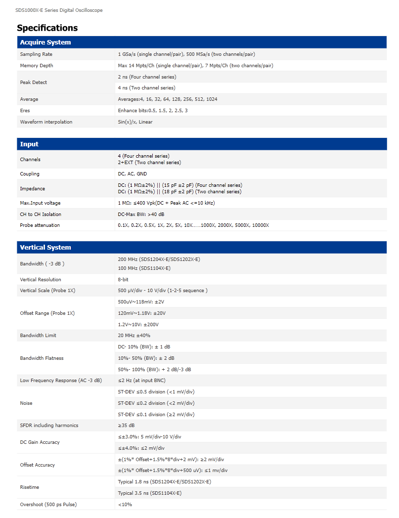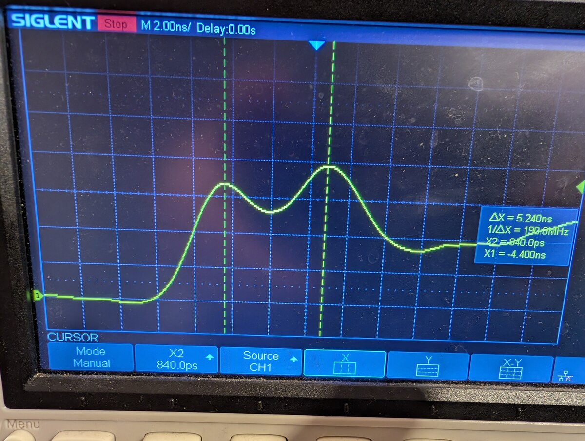 Hab mir mal das Datasheet vom Siglent SDS 1202X-E kommen lassen, sieht eigentlich brauchbar aus: (Auszug im Anhang) * https://www.siglent.eu/product/1139233/siglent-sds1202x-e-200mhz-dual-channel-oscilloscope * https://www.siglent.eu/_downloads/e5eb764e80fe22c31f9de28f627610fb Horizontal hat es 1 GSa/s soilange nur ein Channal aktiviert ist (das scheint hier der Fall), also pro x- Raster 5 Punkte. Ja, da werden interpolierte Zwischenwqerte angezeigt, aber das ist IMHO akzeptebal. In Y-Richtung ist da IMHO Potential für eine genauere Messung. 8bit Auflösung auf 20V macht für die kleinste Schrittweite ca 10 mV. Für die AC -Kopplung steht was von Hochpass mit Cut-Off bei 8Hz sollte hier also kein Problem sein, interesanter sind die die anderen (Noise reduction-Filter, Bandwidth-Limit bei 20 MHz) also TP. Ob bei der AC-Kopplung Probleme mit der Anpassung (Reflexionen) entstehen kann ich nicht mit Sicherheit sagen. Mglw. kann man am FFT-Spektrum erkennen ob der zweite Peak tatsächlich höher ist, da die FFT die Tatsächlichen Daten verwendet und keine für die Anzeige interpolierten.