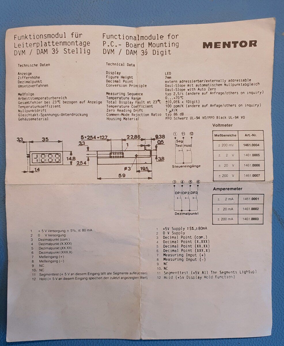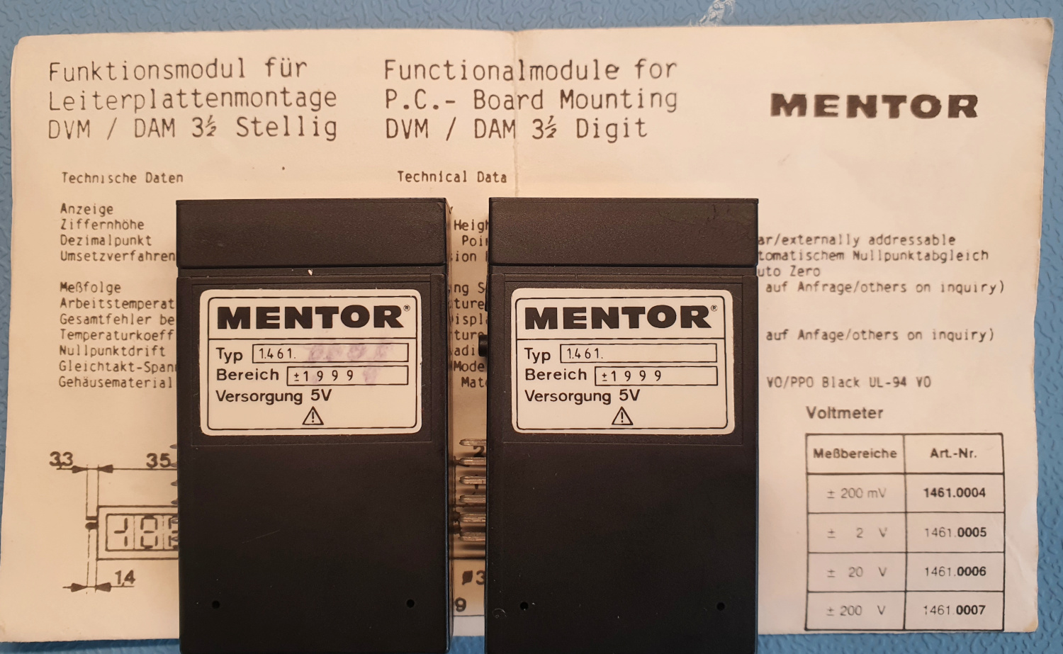 Zwei "abgelagerte" DVM Module von Mentor für zusammen 10 Euro plus 3 Euro Porto abzugeben. Die Module stammen locker noch aus den 90er - vieleicht kann jemand damit noch etwas anfangen. Bezahlung am Besten mit PayPal (Freunde) und wenn nicht anders möglich auch per Überweisung.