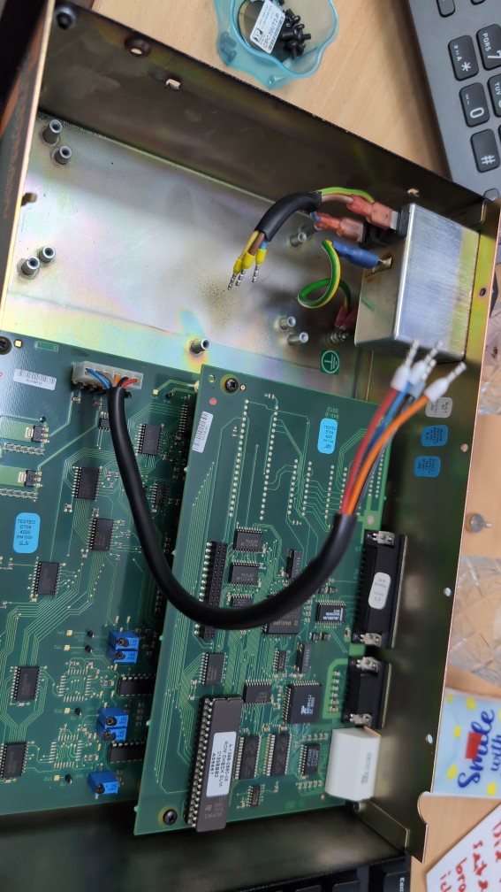 Hier ein paar Fotos.. Achso und da ist eigentlich noch ein Blechgehäuse drüber mit Lüftungsschlitzen (um die Netzteilplatine herum)..