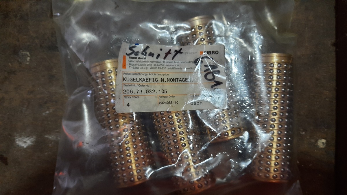 Hy Nick, ja ein wenig. Für die 900 Schnittnadel: Wunsch 300€ (Ist das fair?) Für die 4 Kugelkäfige D32 L105 mm - 100€ Für die 8 Kugelkäfige D50 L105 mm - 200€ --> beides OVP, ist nur ein Bruchteil des Neupreises) Gasdruckfeder - 70€ Für die Federn (fehlen noch Bilder und Menge) - kein Plan Gleiche gilt für die Zylinderstiftbuchsen